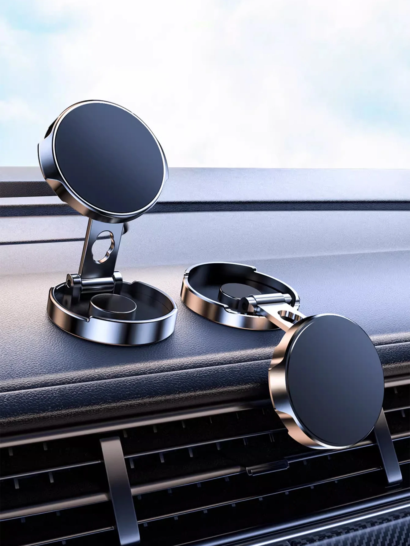 1 soporte magnético para teléfono para coche 360 ° Soporte de tablero universal de metal plegable giratorio para navegación GPS