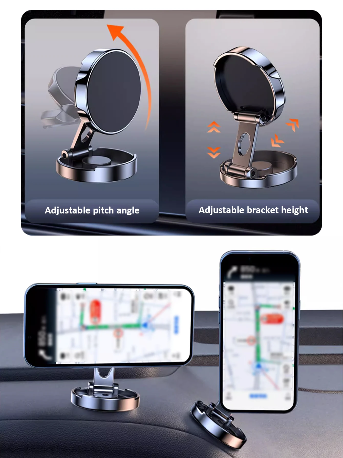El 360° El diseño giratorio permite un fácil ajuste del soporte del teléfono, asegurando ángulos de visión óptimos para la navegación GPS.