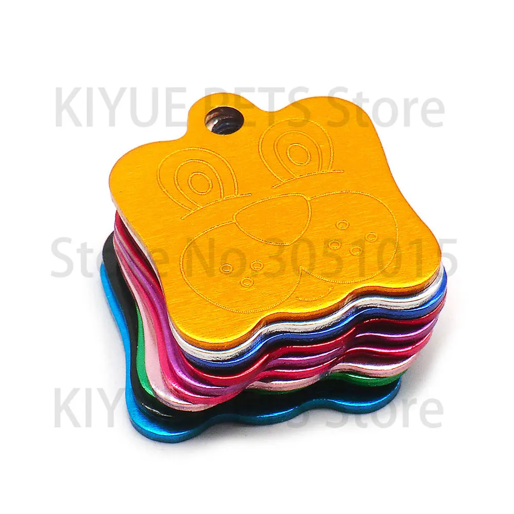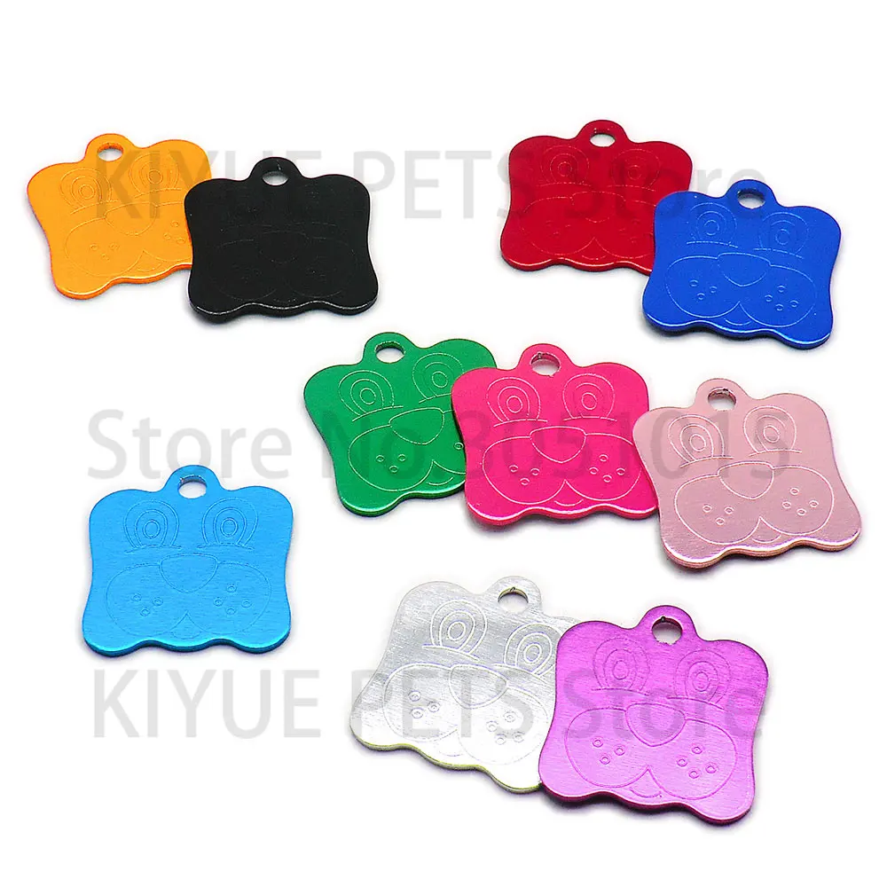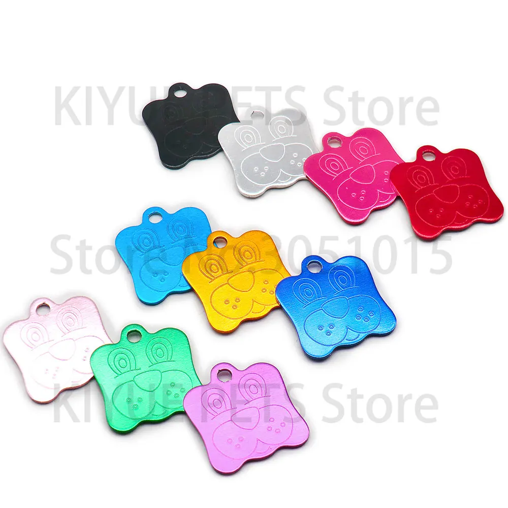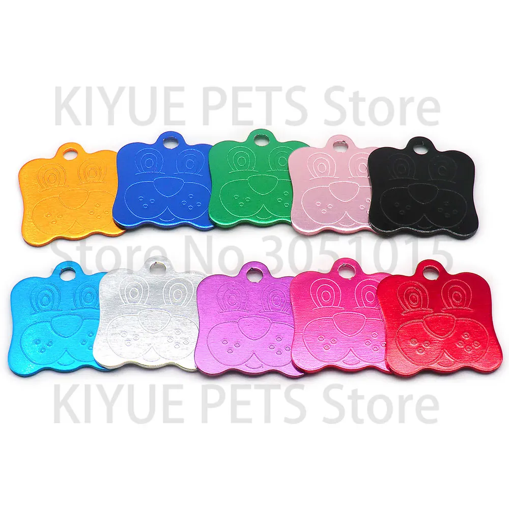 100 Uds. Etiqueta de aluminio con forma de cabeza de perro, etiqueta de identidad de Metal para mascotas, Collar con personalidad, colgante, accesorios de regalo para gatos