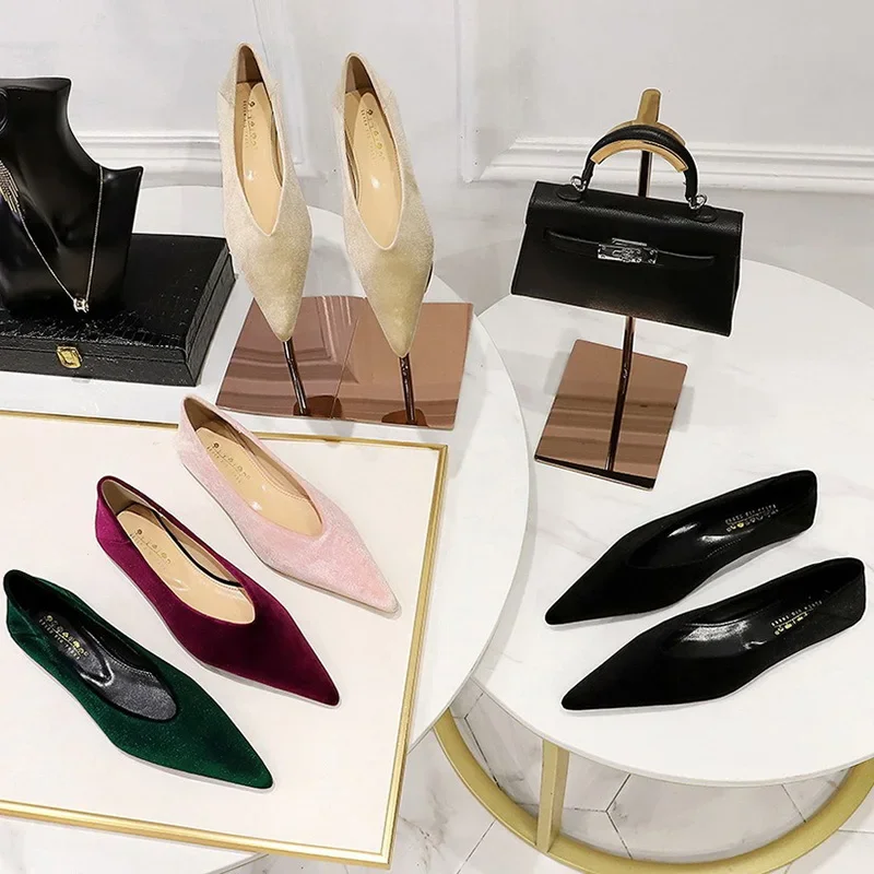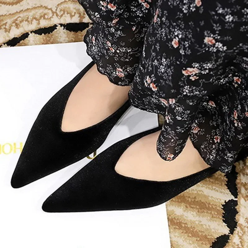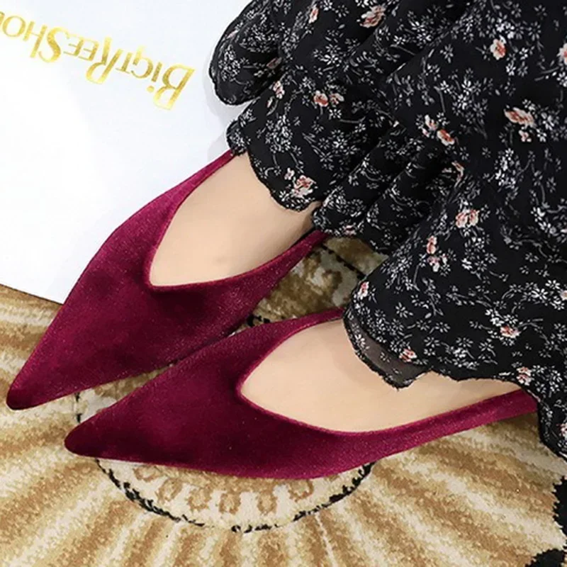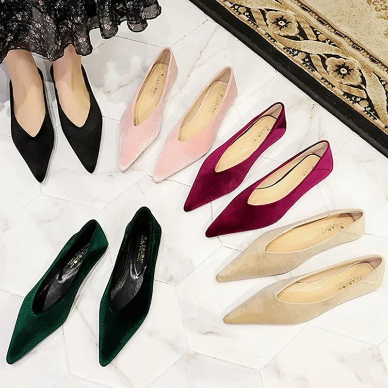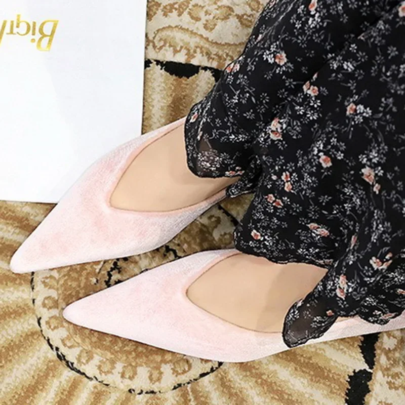 2025 mujeres 1cm tacones bajos clásico baile de graduación zapatos planos rosas mujer terciopelo suave punta puntiaguda tacones bajos señora conciso zapatos descalzos de talla grande