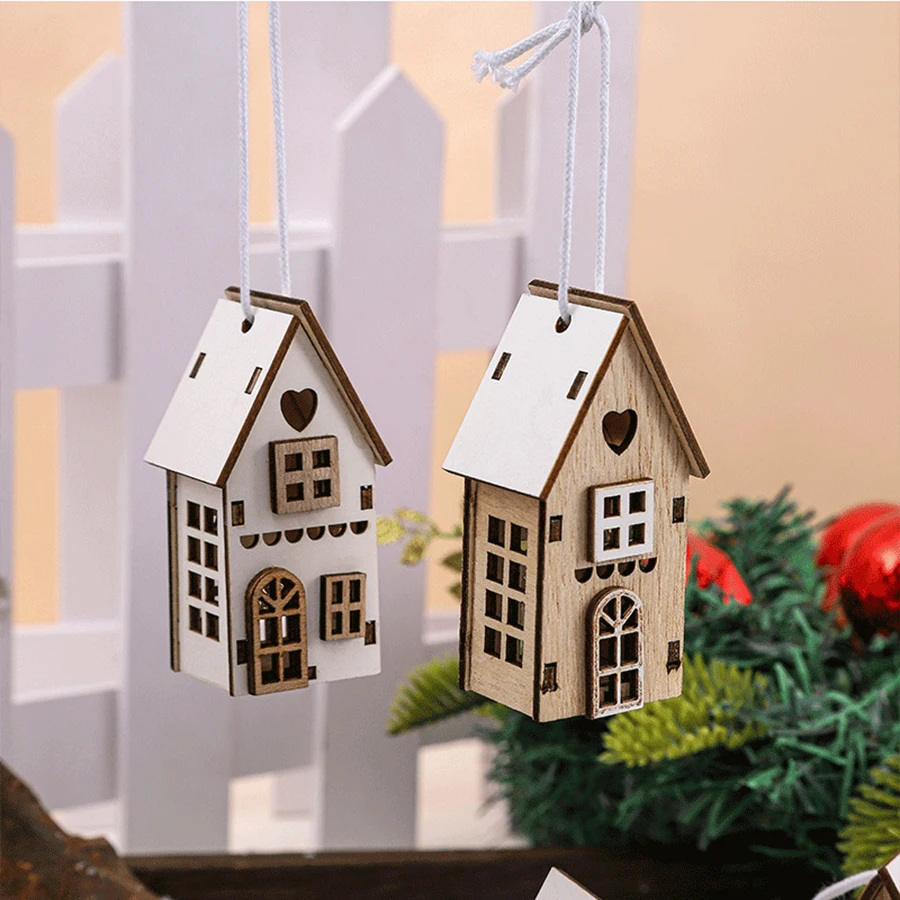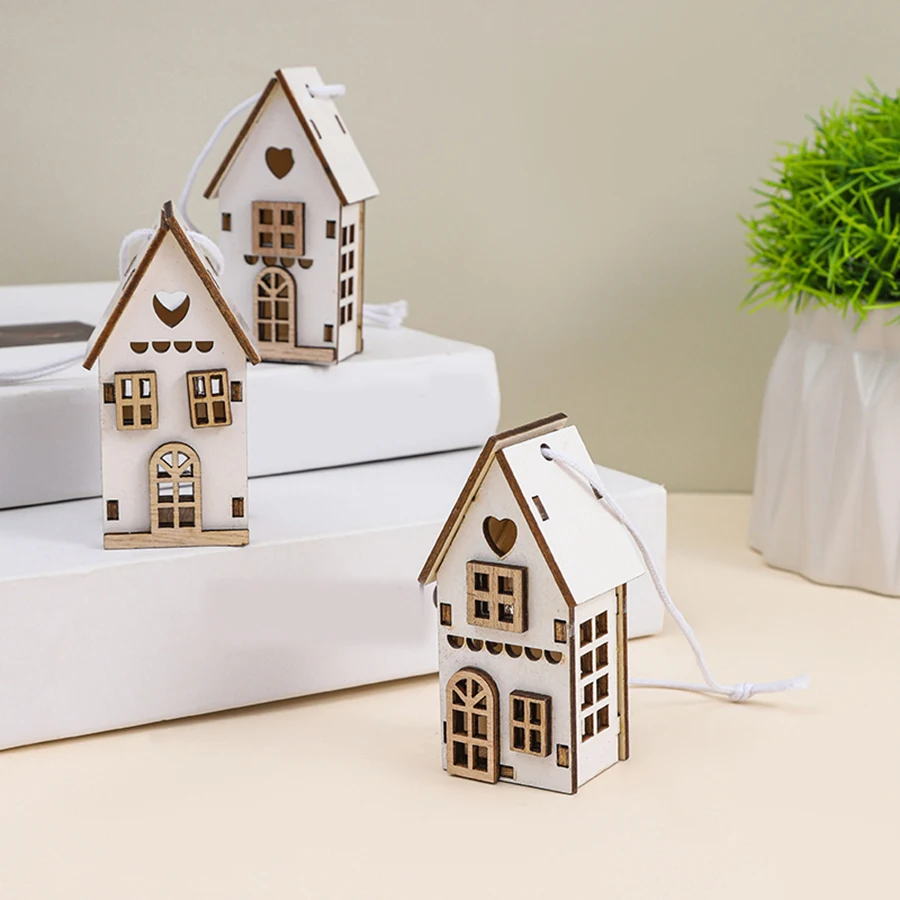3 uds casa pequeña de Navidad adorno creativo de madera colgante adorno de Navidad regalo celebración festiva accesorios de decoración del hogar