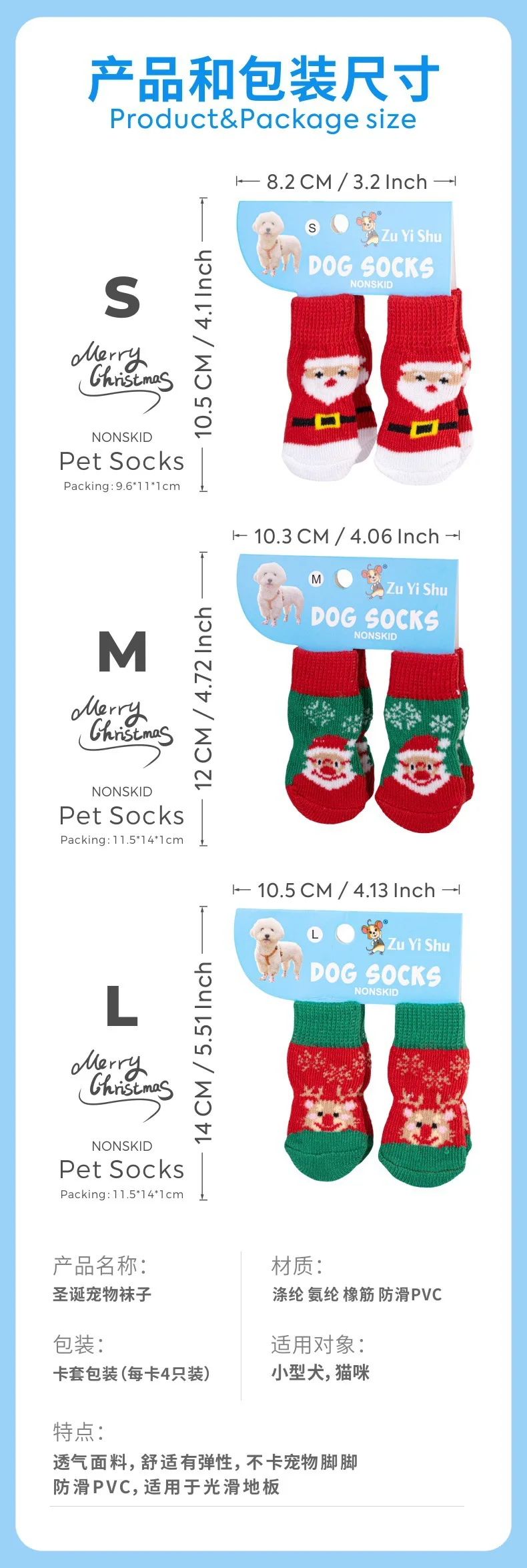 4 unids/set de calcetines navideños de punto para perros pequeños, zapatos para gatos, botas para Chihuahua para invierno, ropa interior cálida, Protector de pata sin cordones