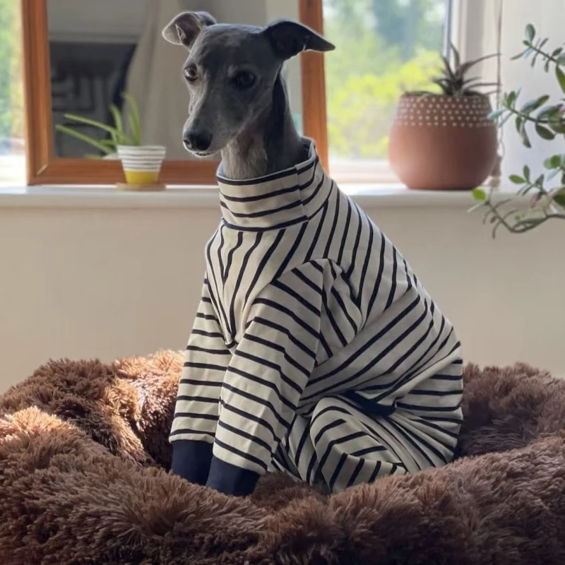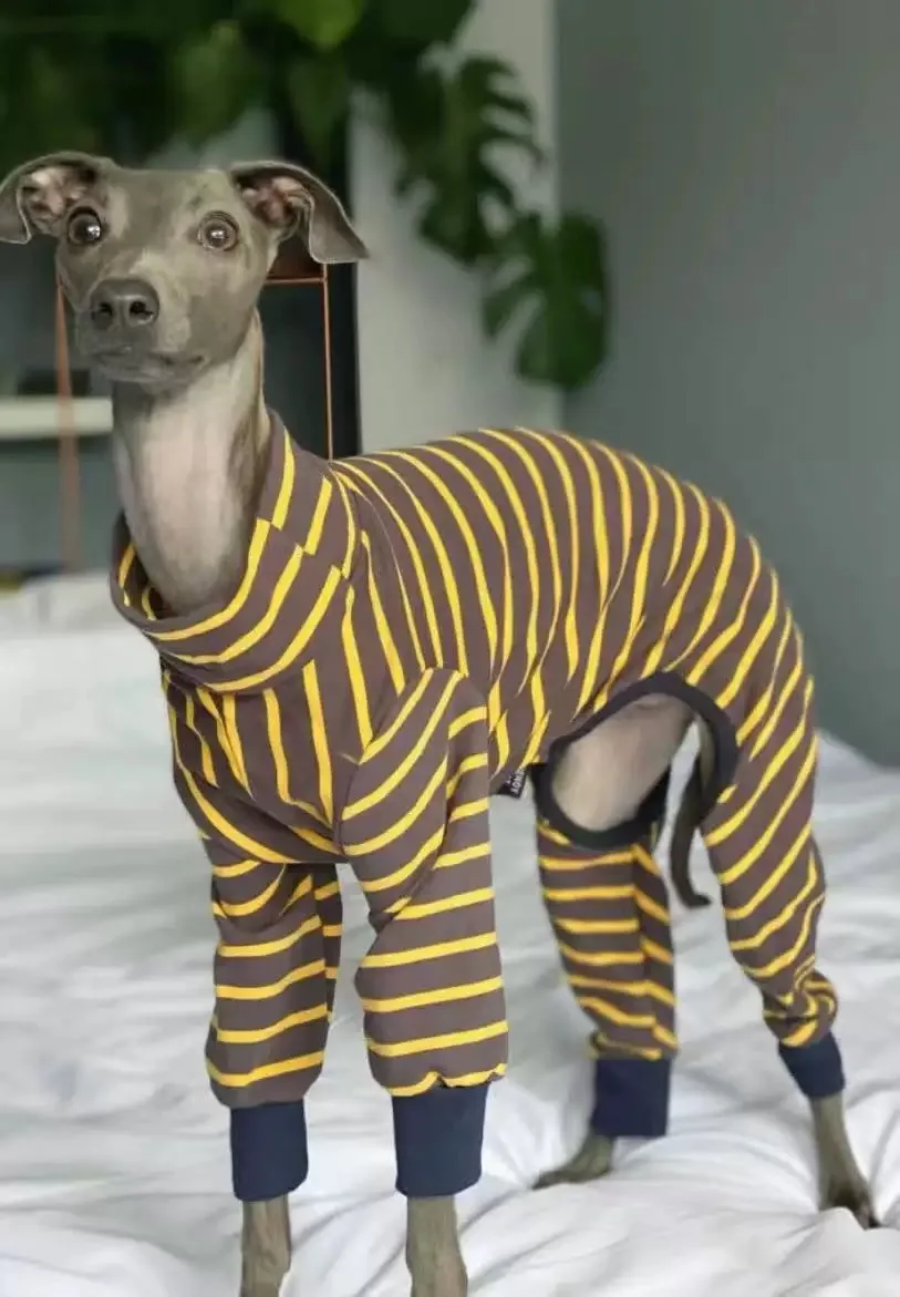 Primavera otoño abrigo de algodón de 4 patas para Grayhound suave ropa de descanso Whippet perro sudadera a rayas Bellington mono de cuello alto