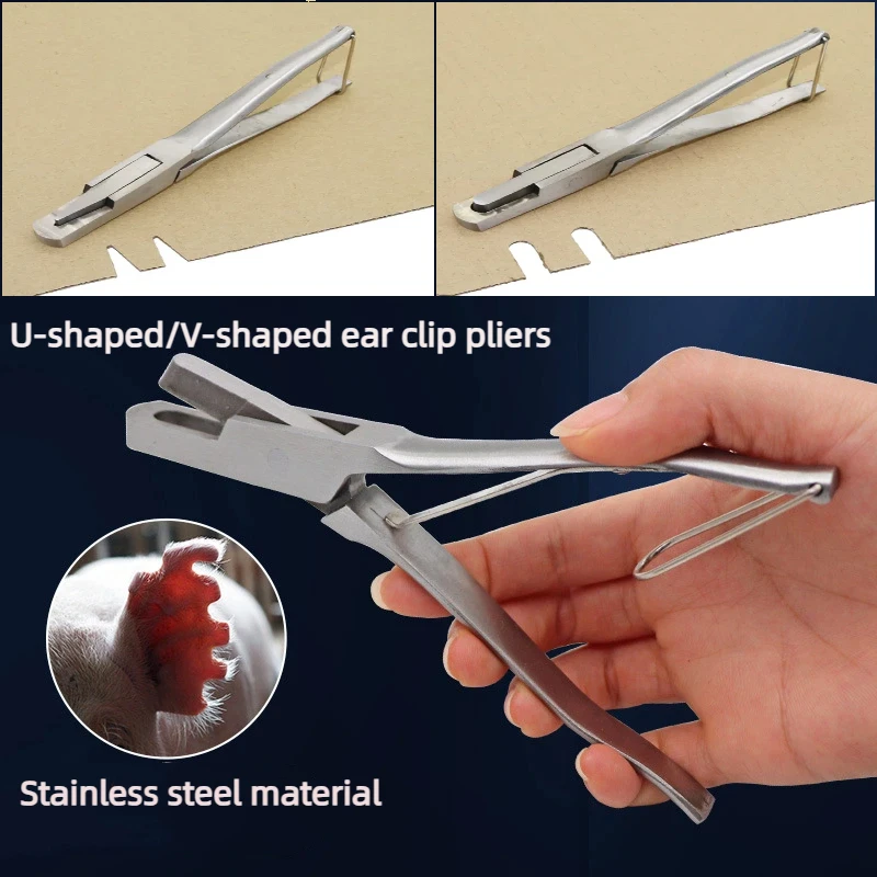 Alicates perforadores de oreja de cerdo de acero inoxidable, alicates para orejas de animales en forma de U, pinzas marcadoras para cerdos, alicates para marcar animales de granja de ganado y ovejas