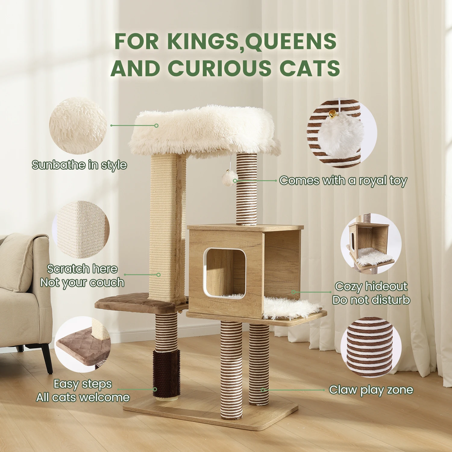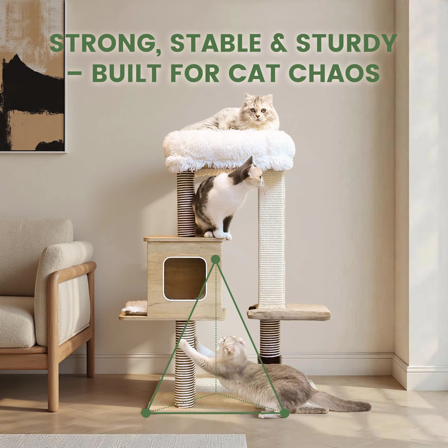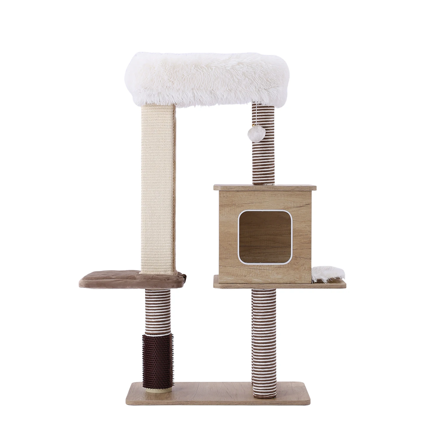 El árbol para gatos mediano de 42 pulgadas presenta un modelo de escalera de cuatro capas, que brinda un amplio espacio para que su amigo felino suba, juegue y descanse.