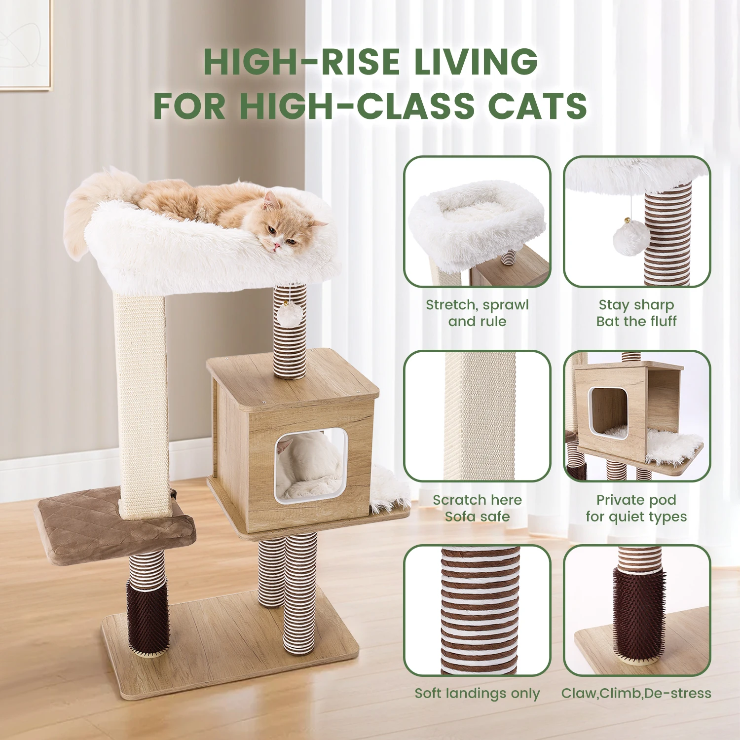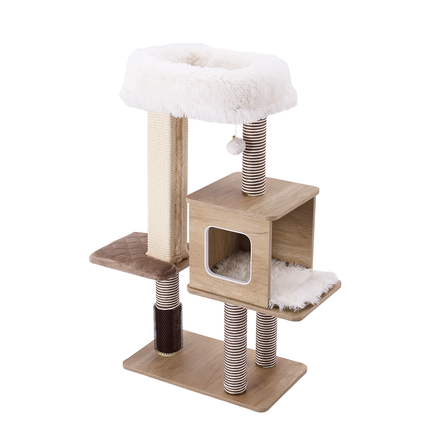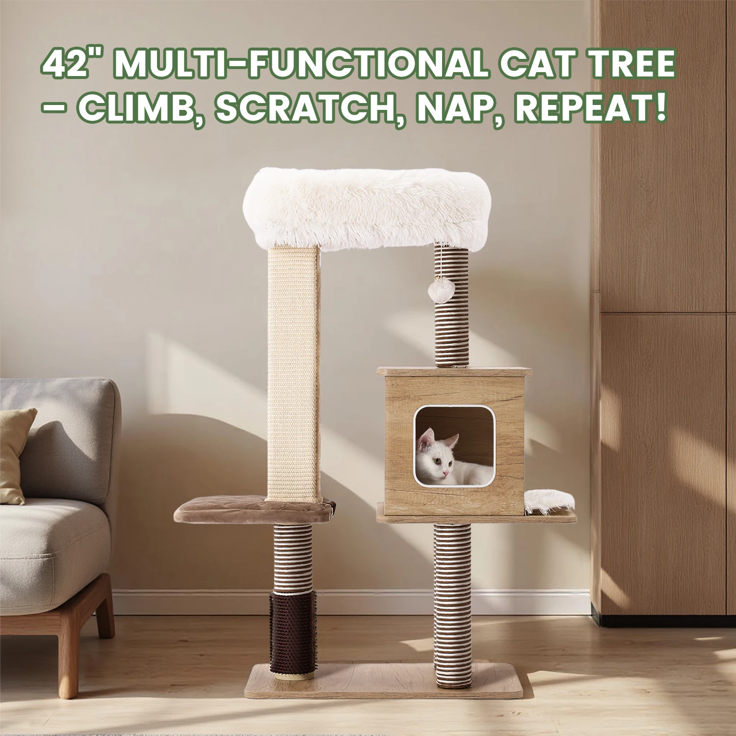 El árbol para gatos mediano de 42 pulgadas presenta un modelo de escalera de cuatro capas, que brinda un amplio espacio para que su amigo felino suba, juegue y descanse.