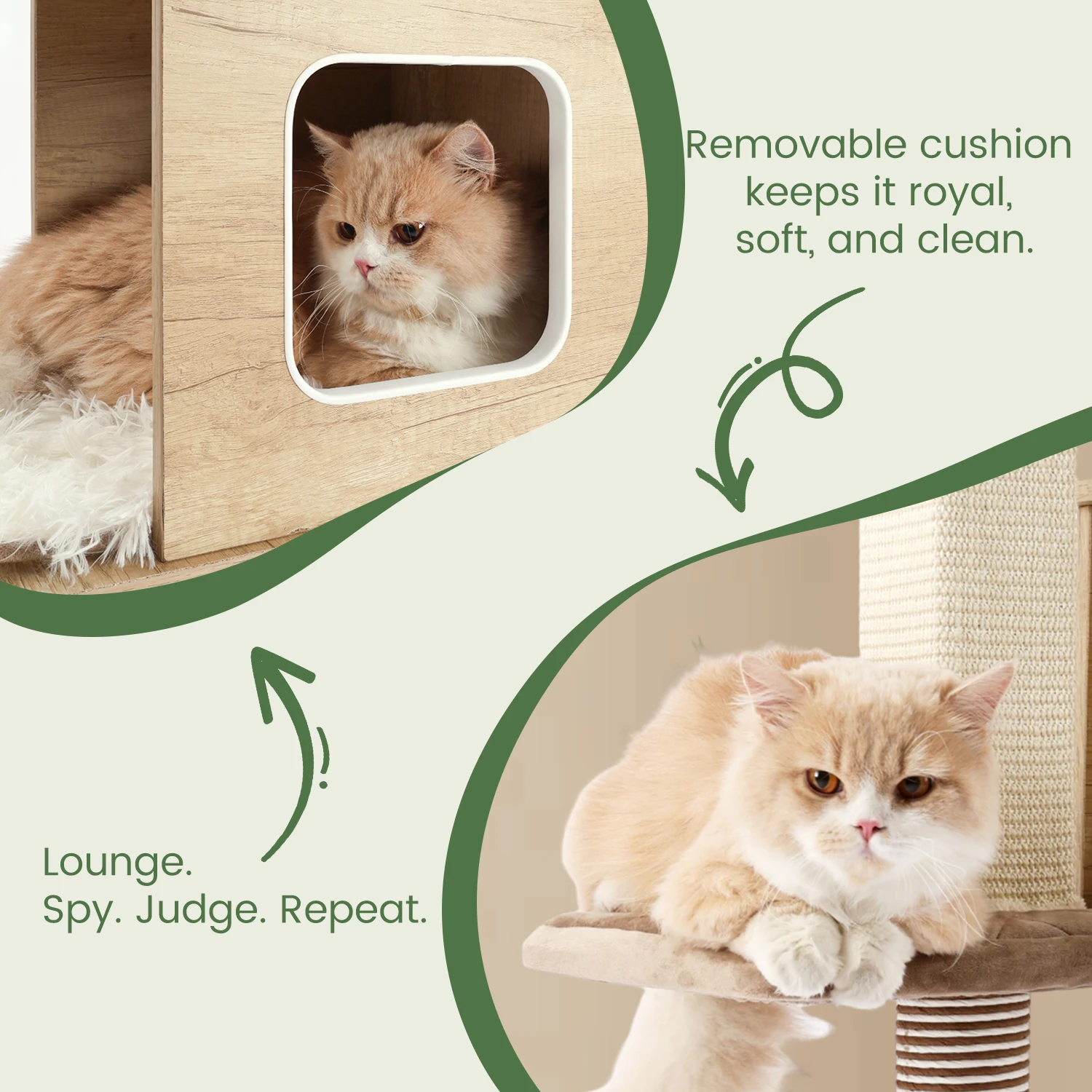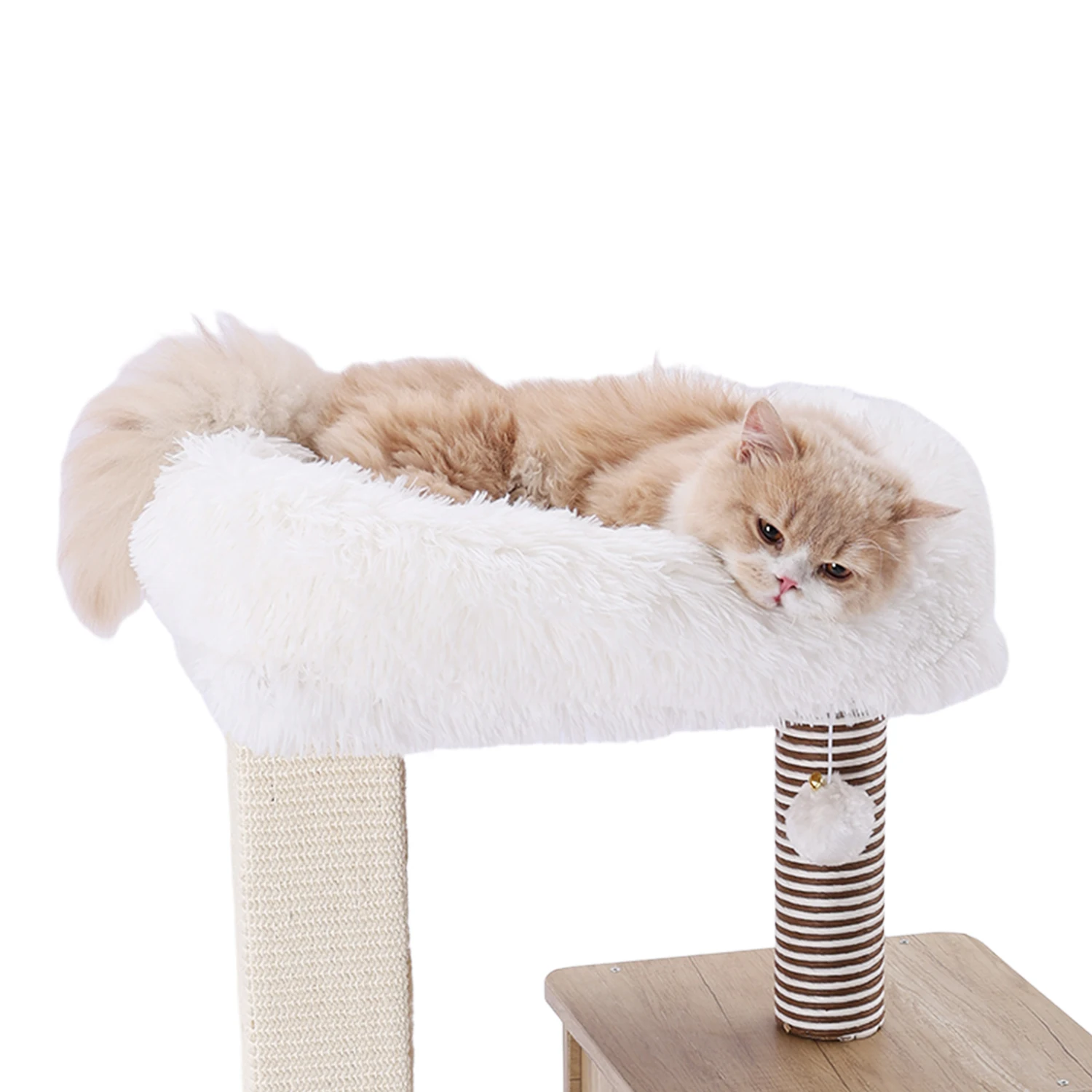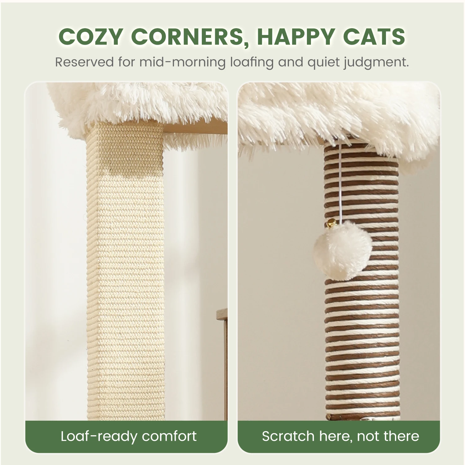 La capa superior del árbol para gatos sirve como una percha acogedora y ofrece un lugar tranquilo para que su gato se relaje y disfrute de la vista.