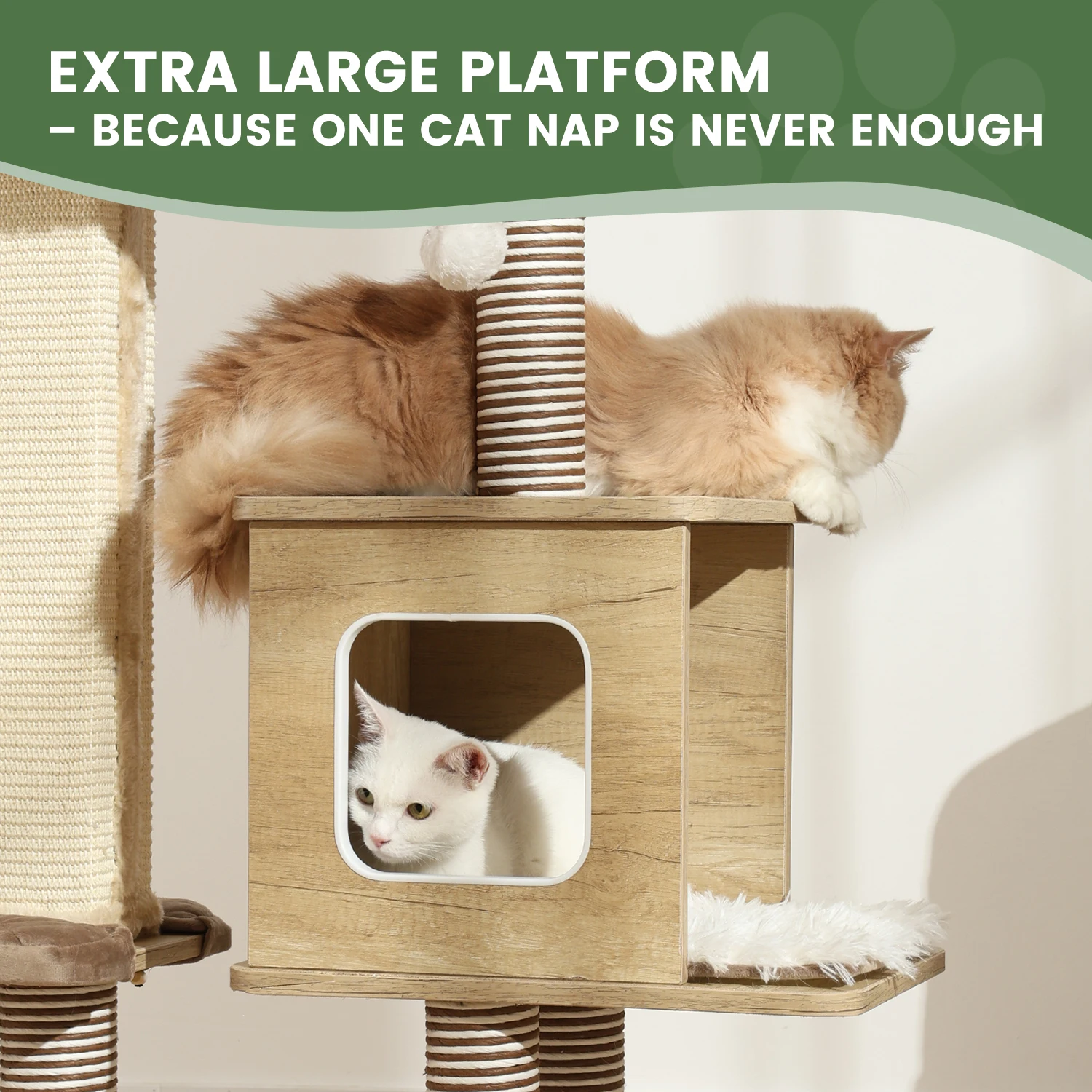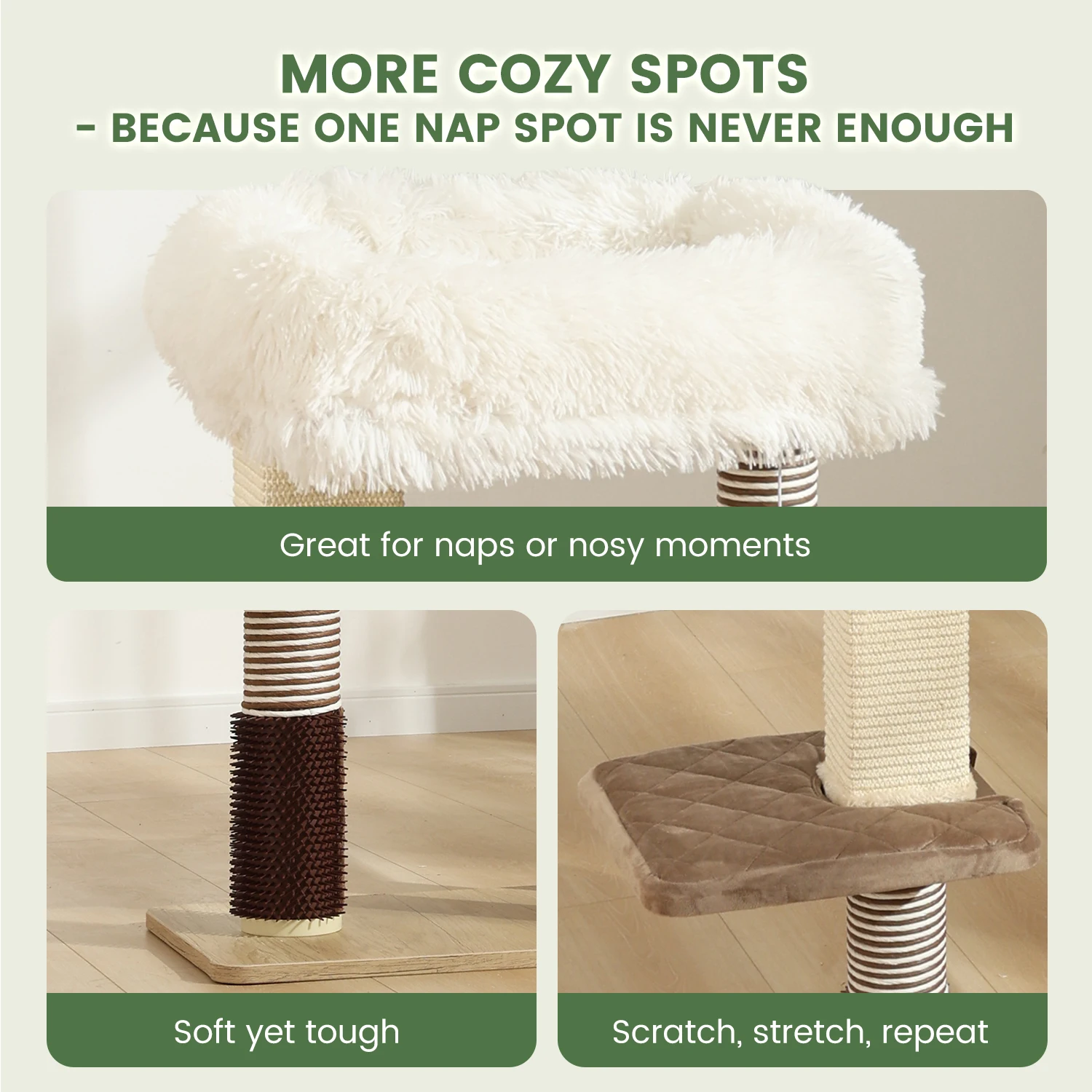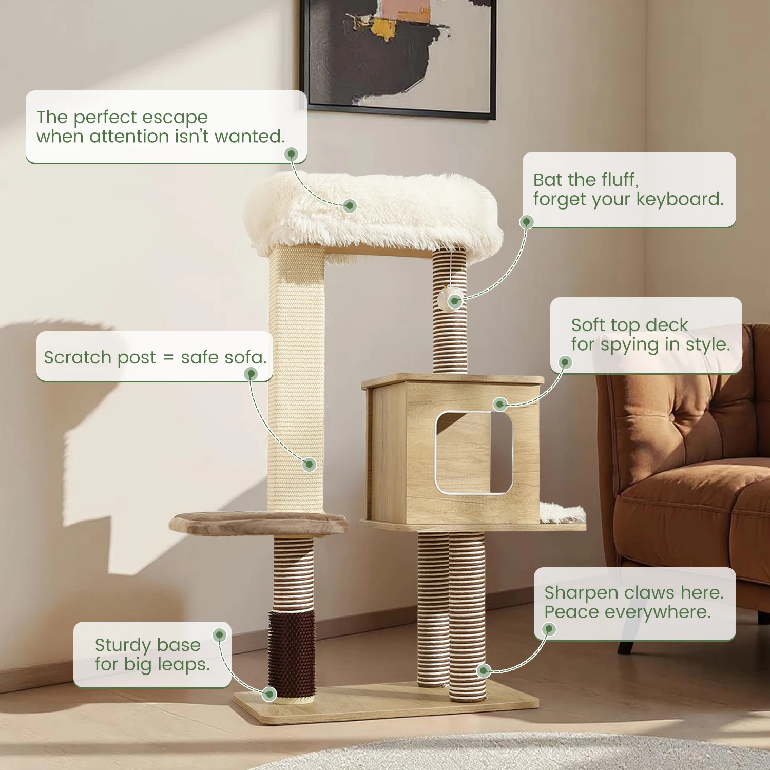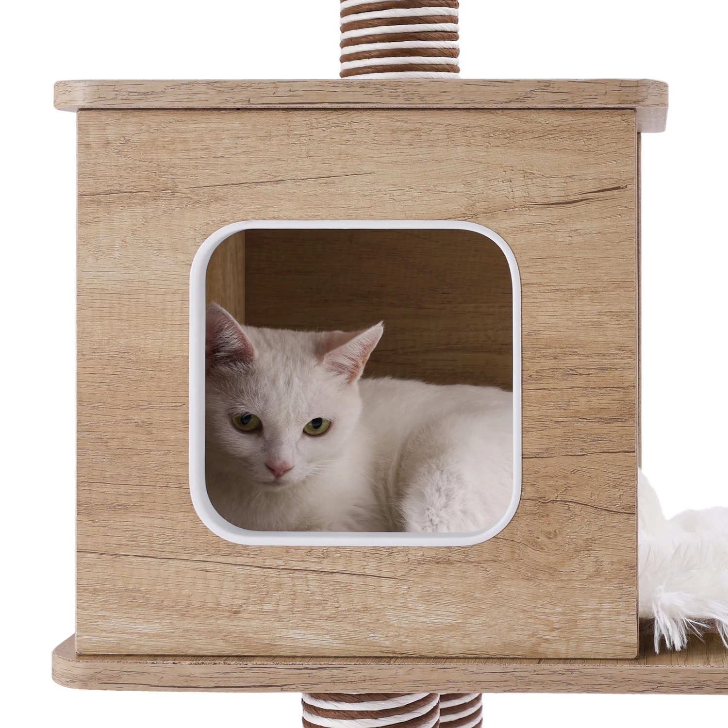 La capa superior del árbol para gatos sirve como una percha acogedora y ofrece un lugar tranquilo para que su gato se relaje y disfrute de la vista.