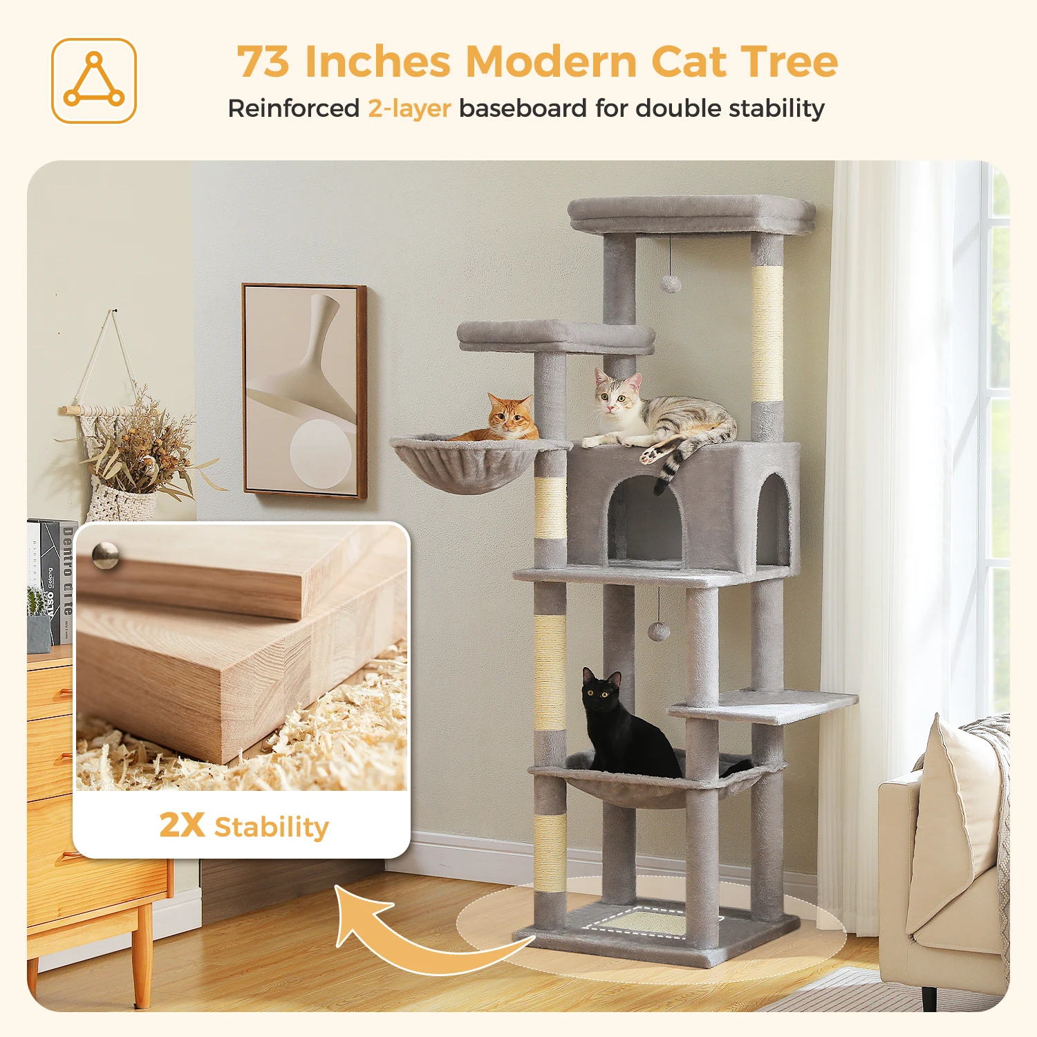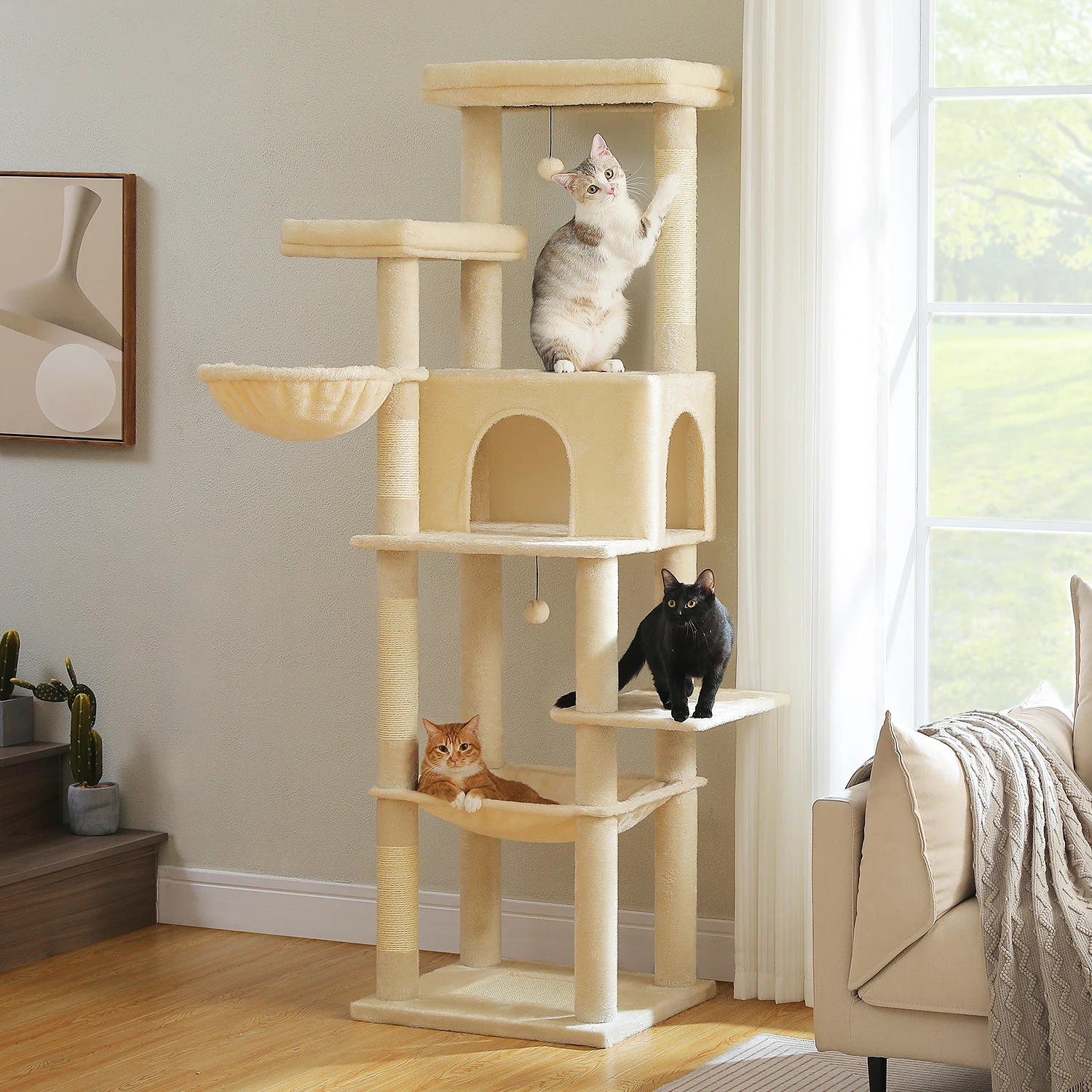 Árbol para gatos de varios niveles con postes rascadores de sisal, hamaca espaciosa, torre para gatos de felpa, condominio grande para gatos, accesorios para gatos de interior, juguetes para gatos