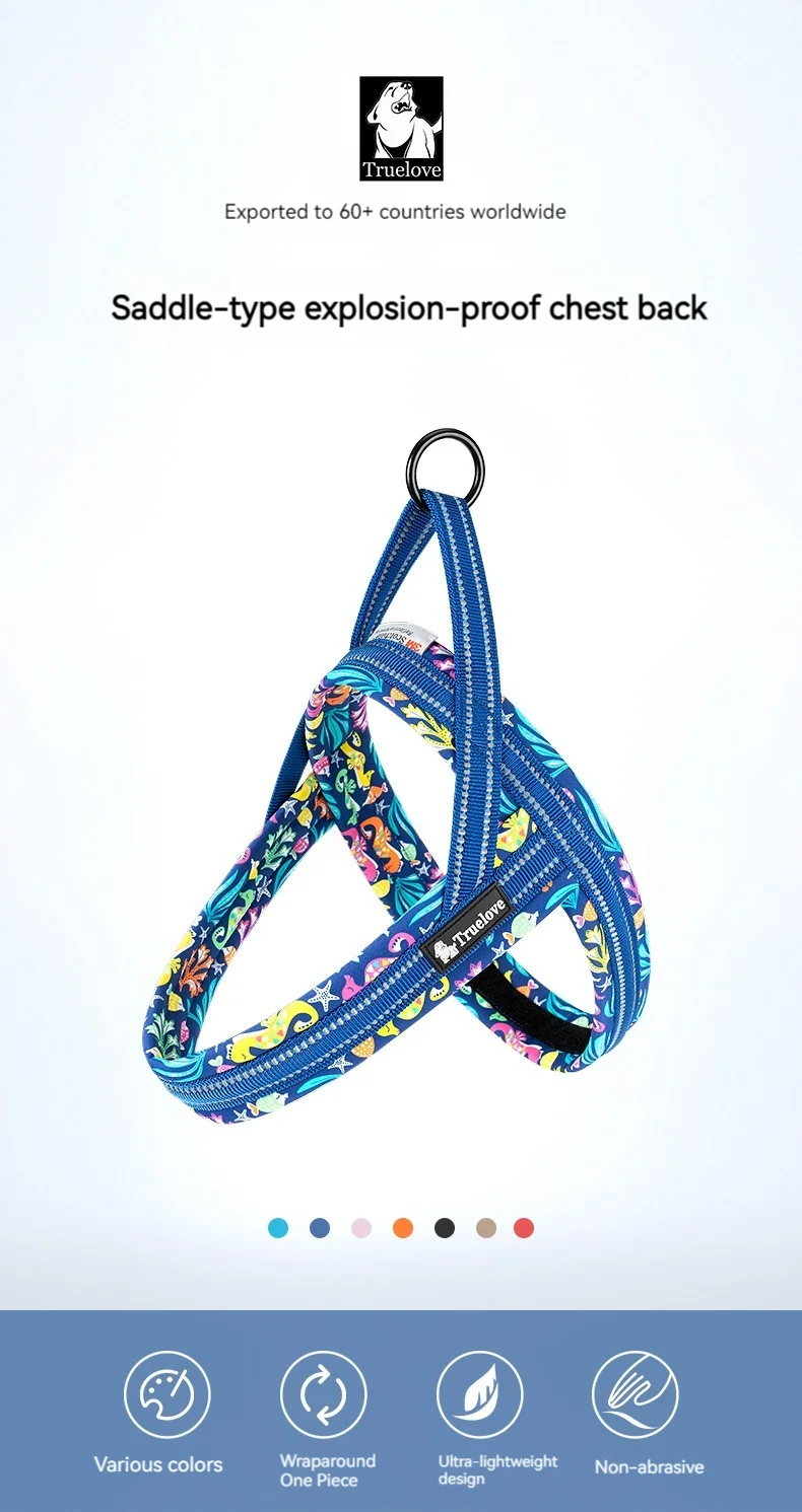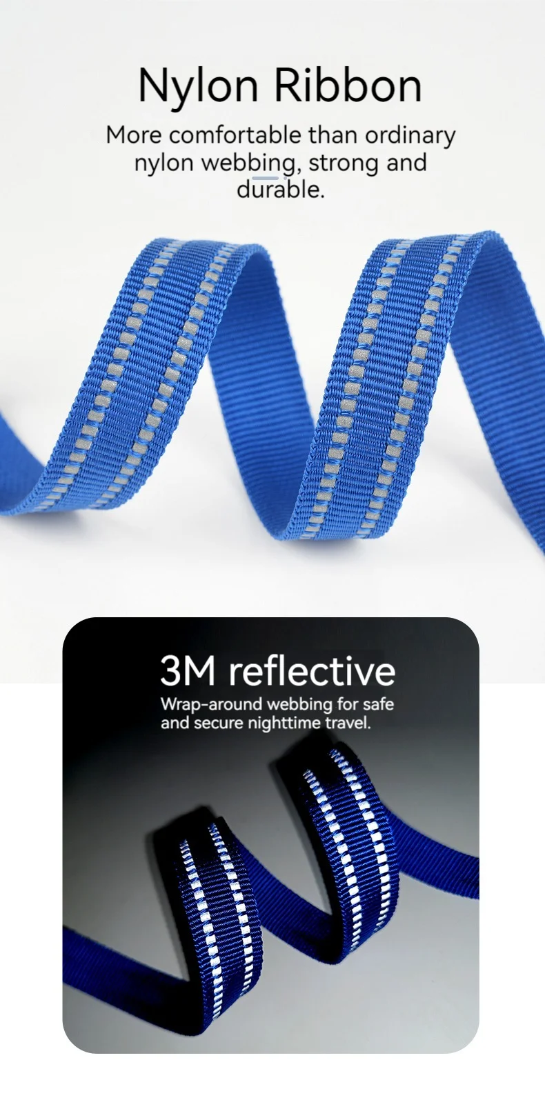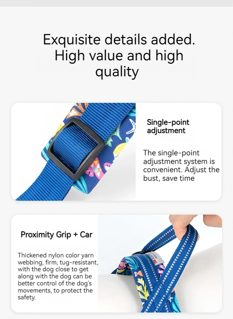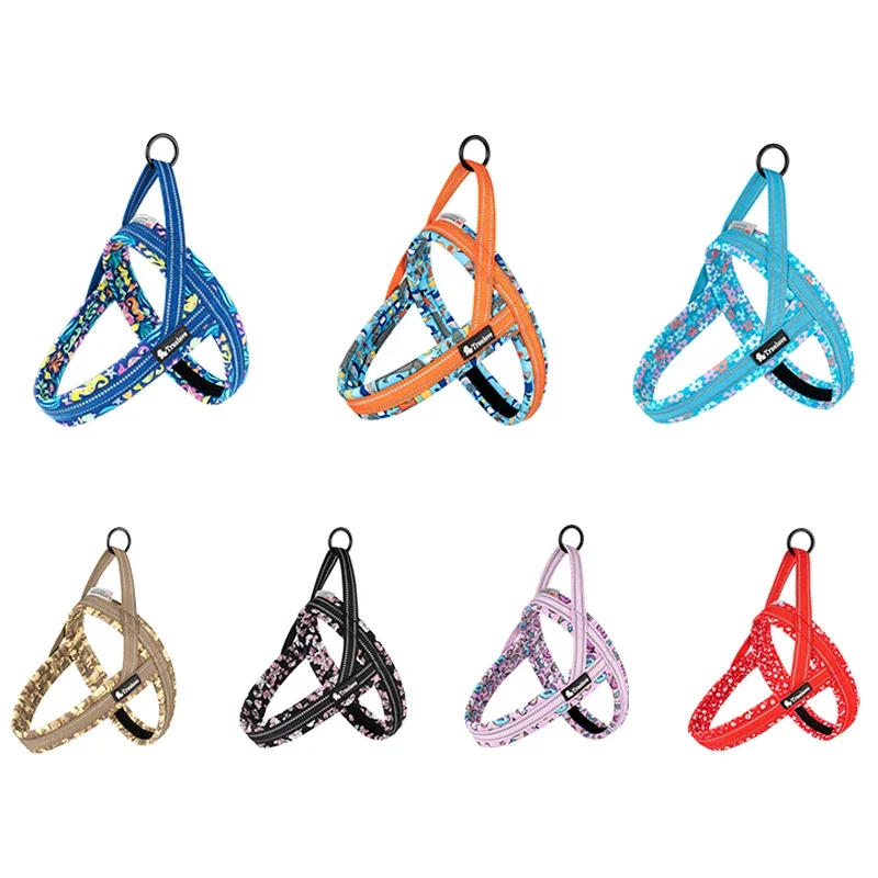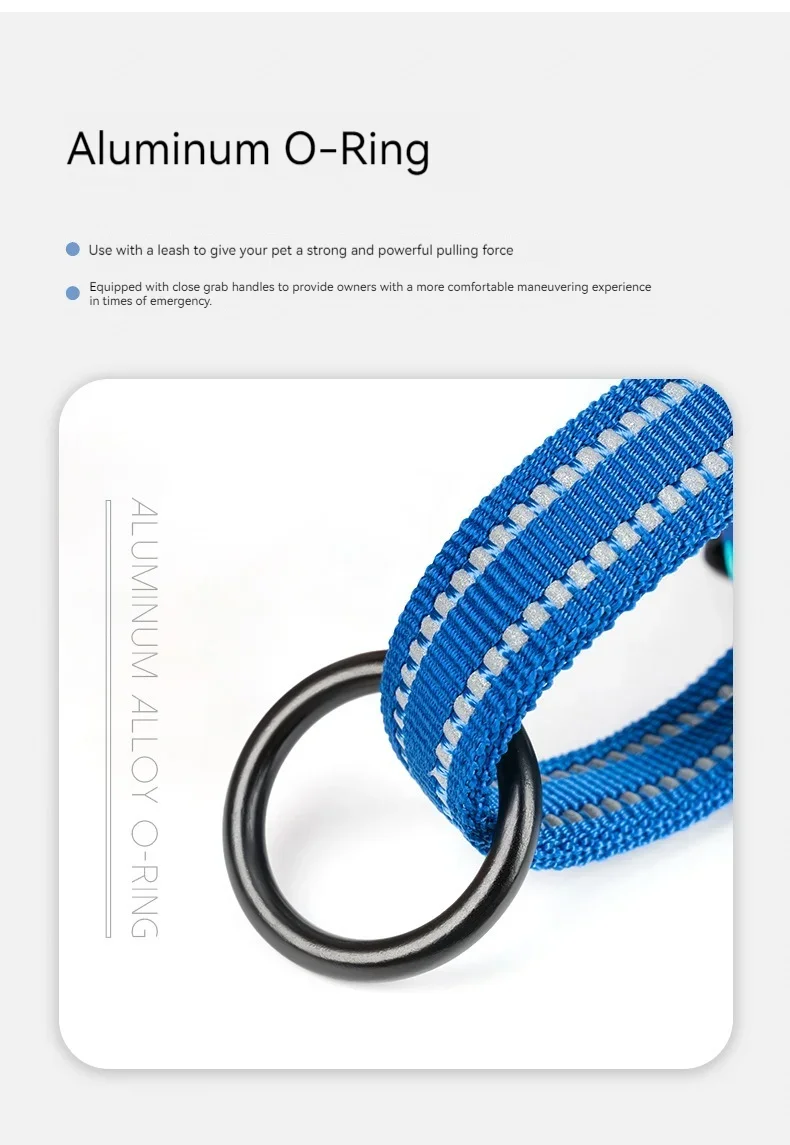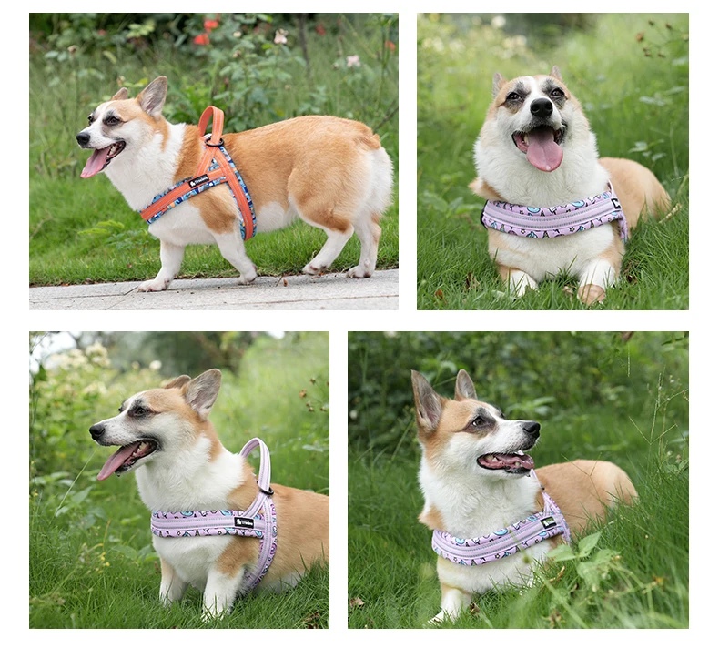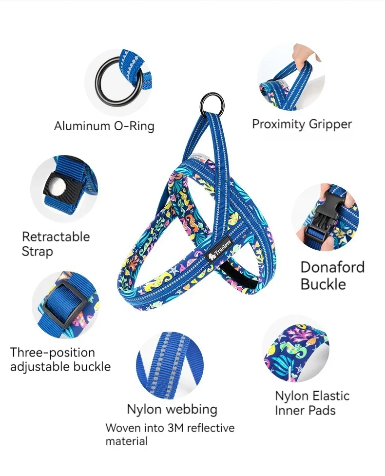 El arnés para mascotas está hecho de correas de hilo de nailon, en comparación con las correas de nailon comunes, es más suave y no abrasivo para la piel del perro, y este material hace que las correas del arnés para mascotas sean más resistentes y duraderas.