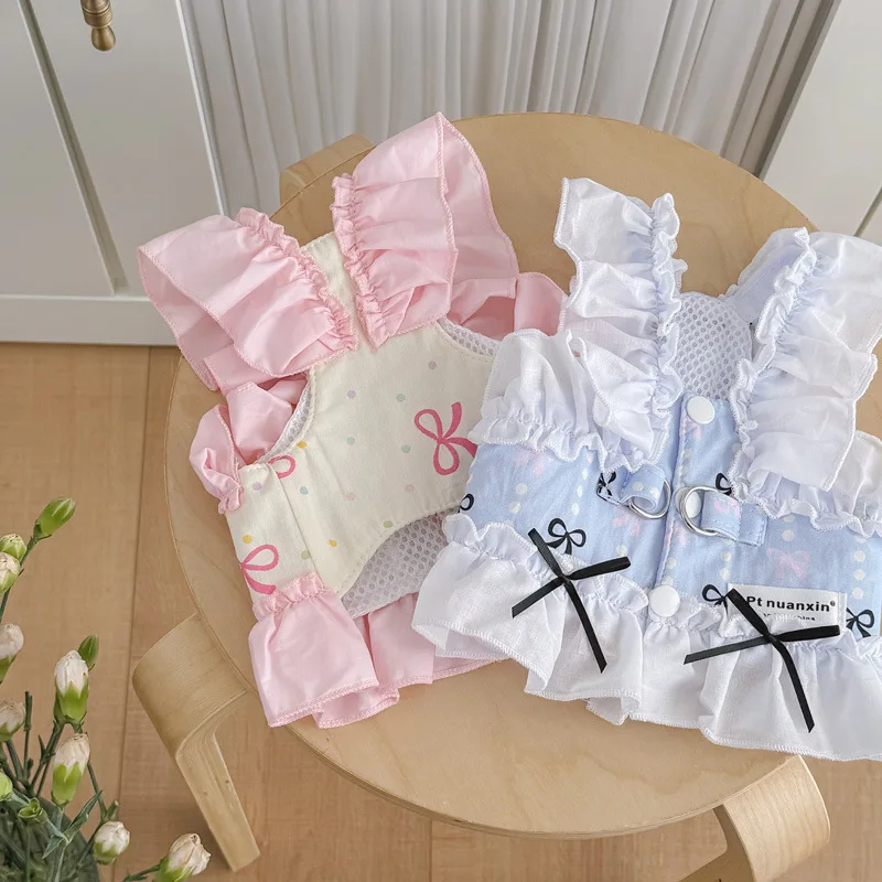 Arnés para perros con lazo para mascotas, bonito vestido de princesa de encaje, puede remolcar, chaleco para gatos, accesorios para perros pequeños, accesorios para cachorros