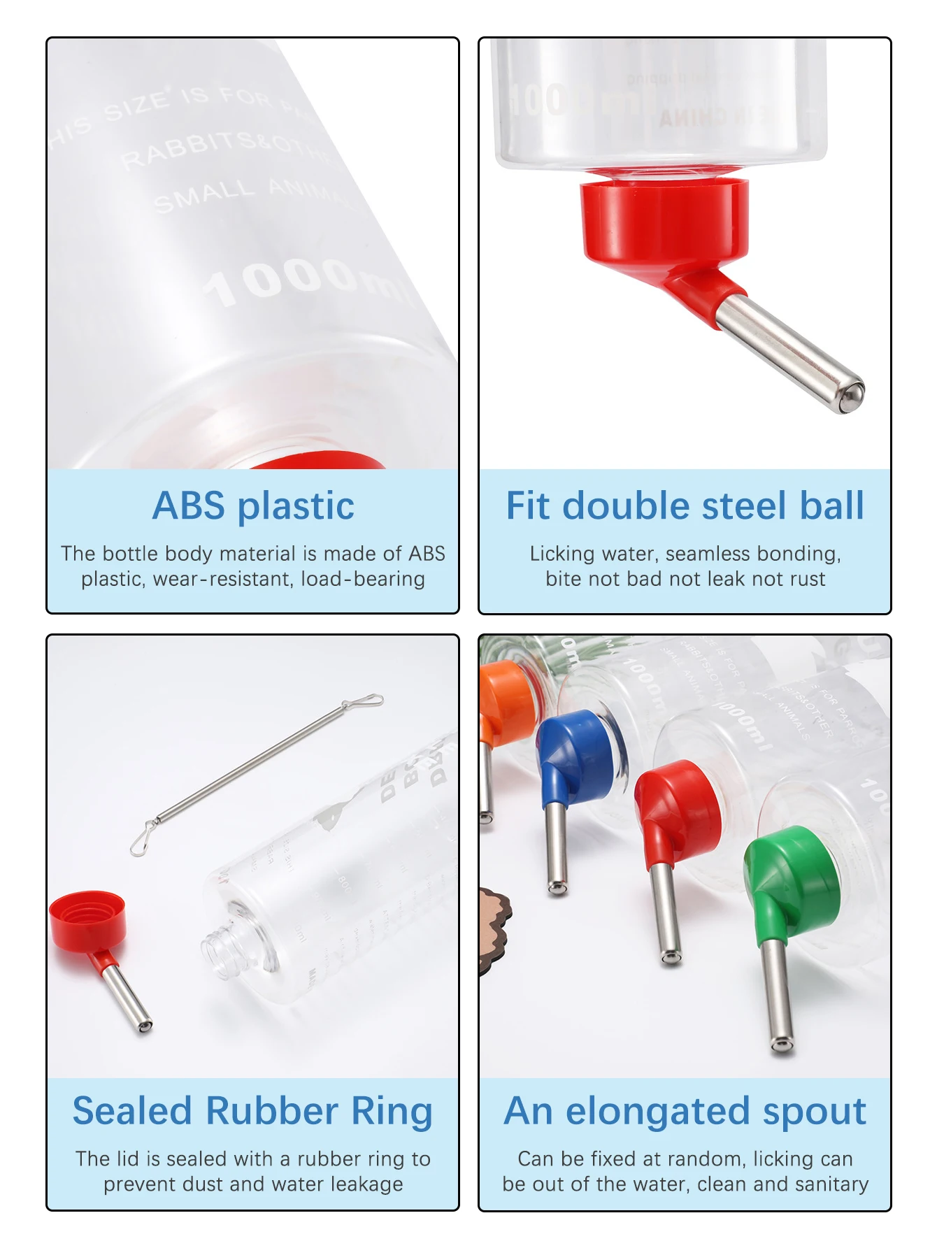 Bebedero de animales pequeños de Color aleatorio, botella de agua colgante para beber automático, conejillo de indias, loro, alimentador de conejo, 1000ml, 1 ud.