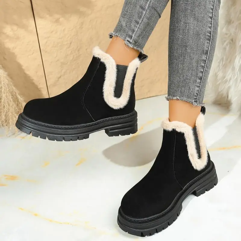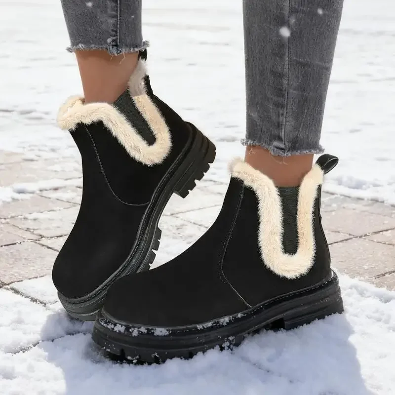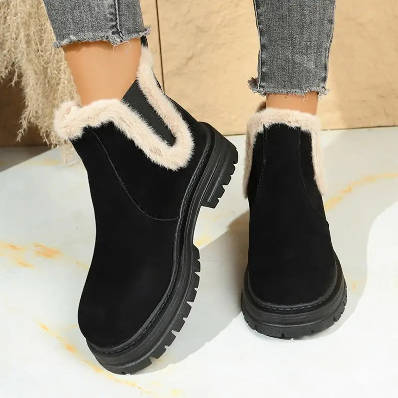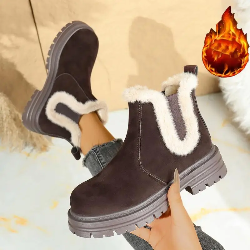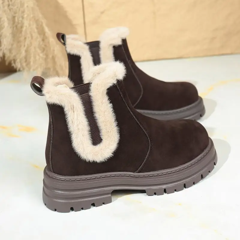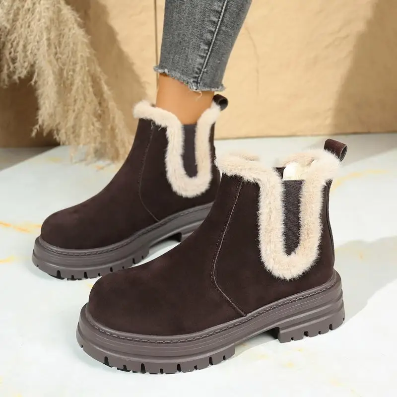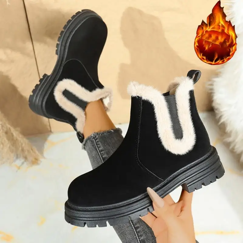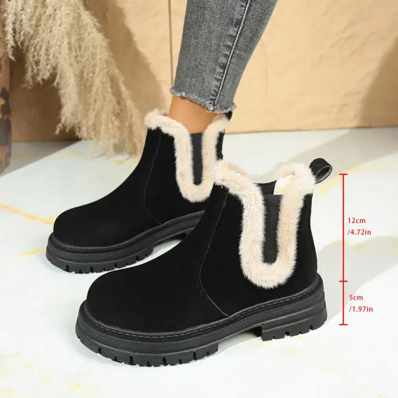 Botas de nieve de gamuza con parte inferior gruesa de piel esponjosa de lujo para mujer, botines cálidos de felpa para invierno, botines cortos Chelsea de talla grande para mujer