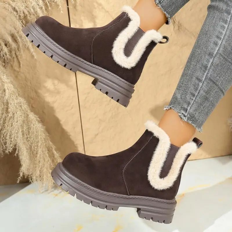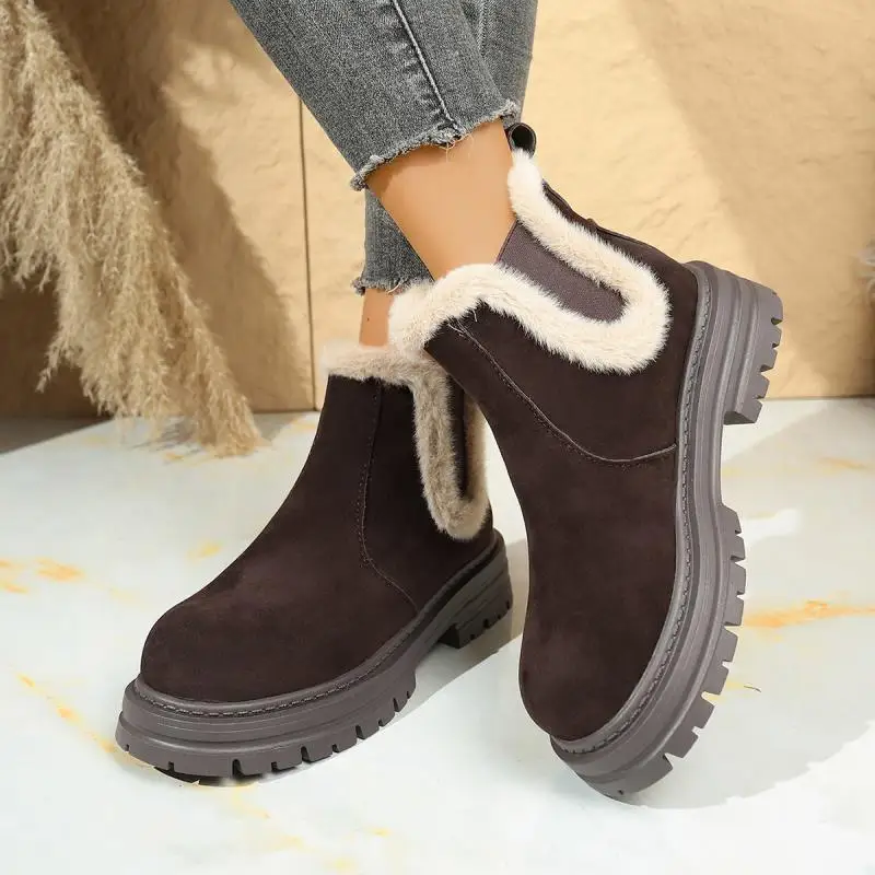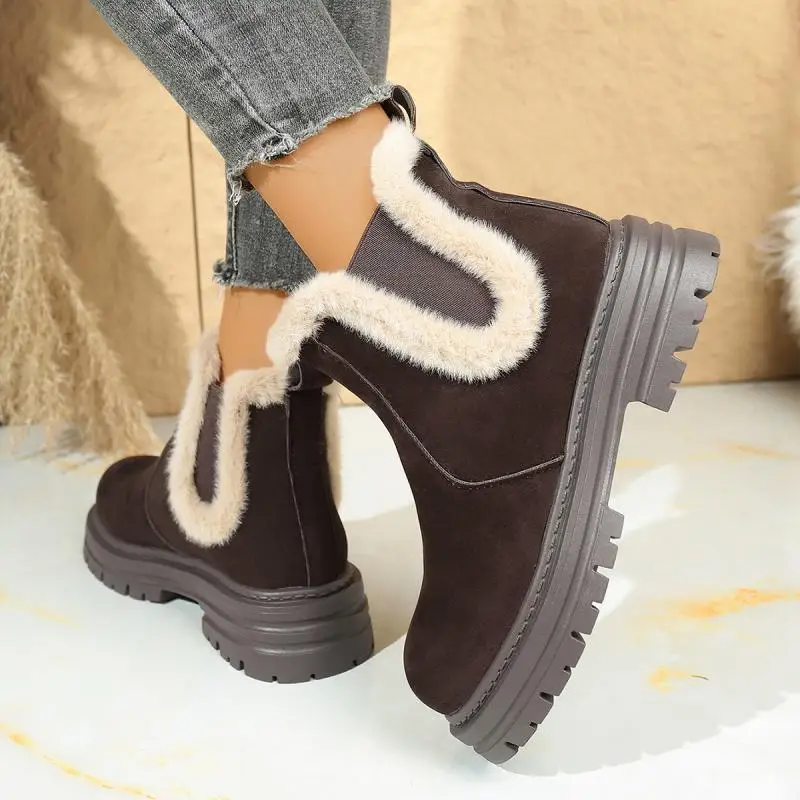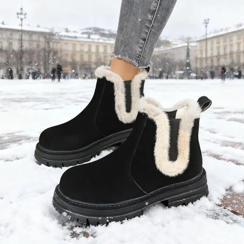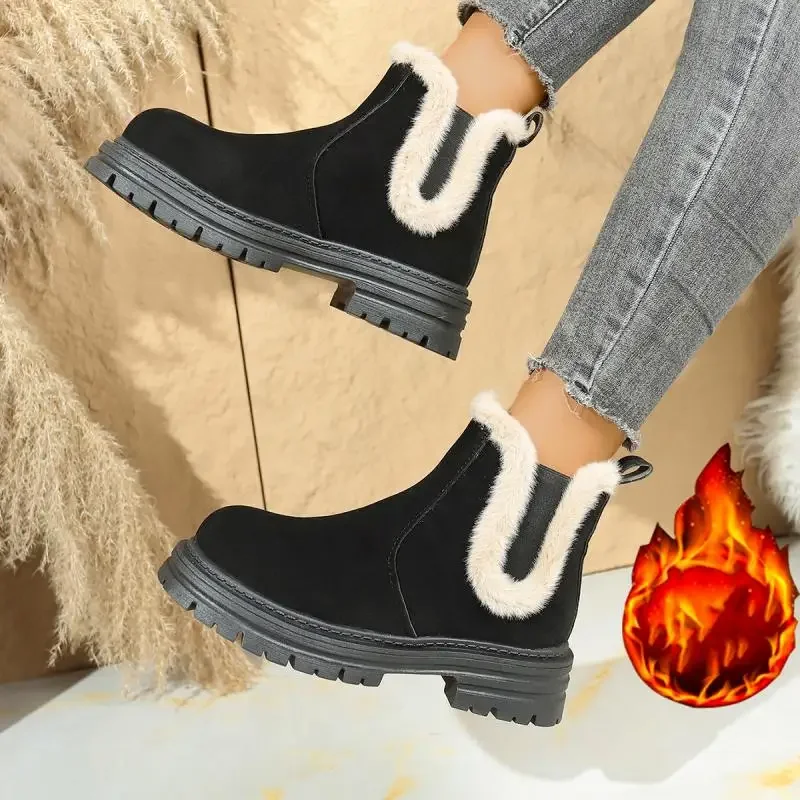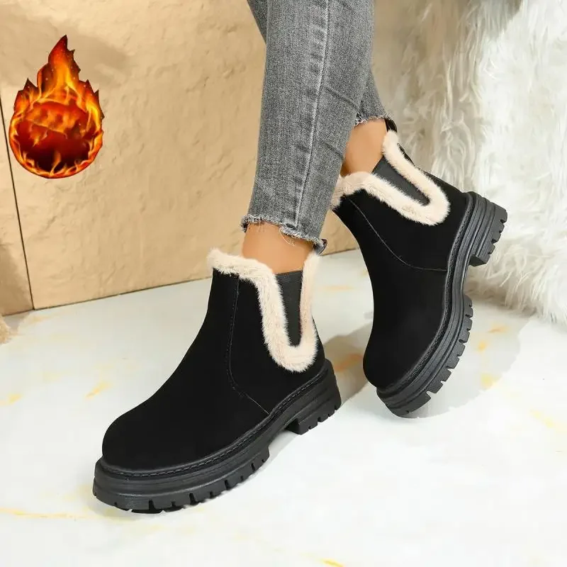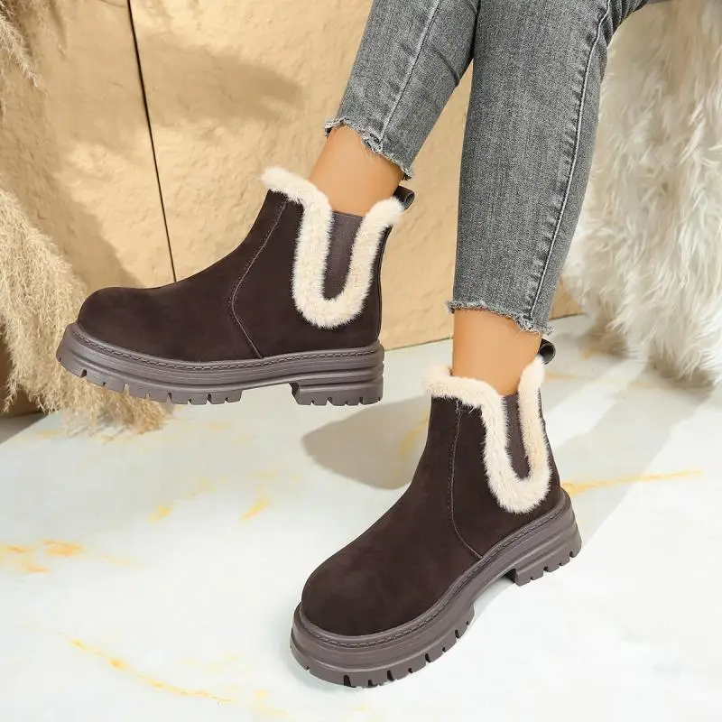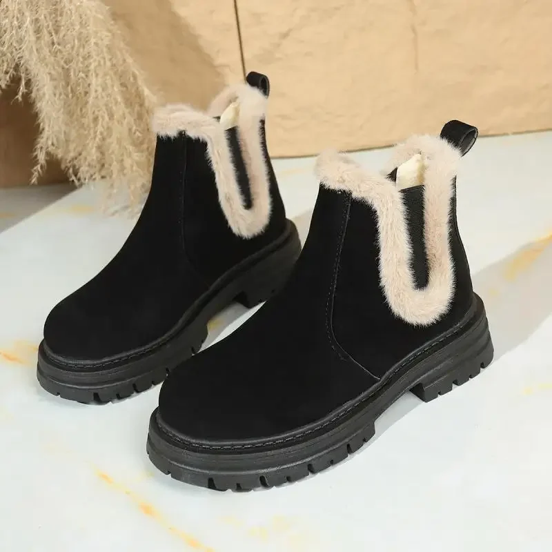 Botas de nieve de gamuza con parte inferior gruesa de piel esponjosa de lujo para mujer, botines cálidos de felpa para invierno, botines cortos Chelsea de talla grande para mujer