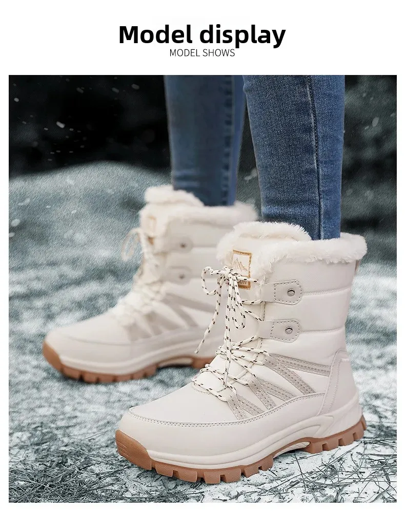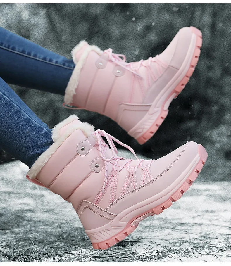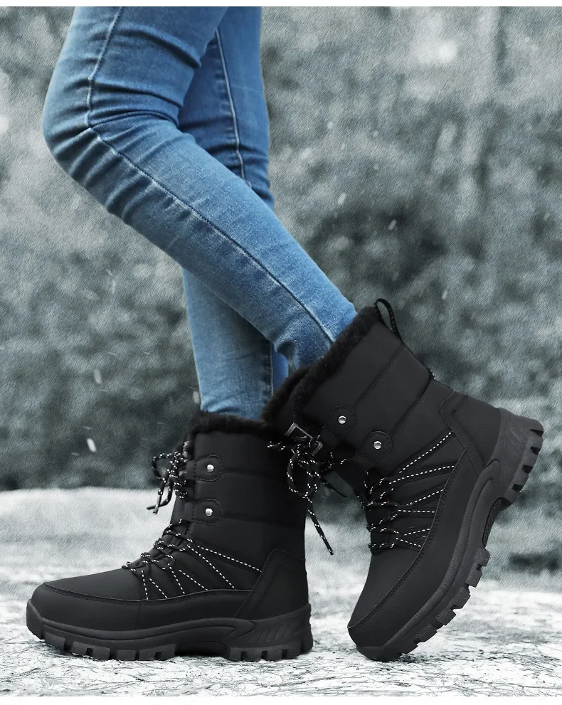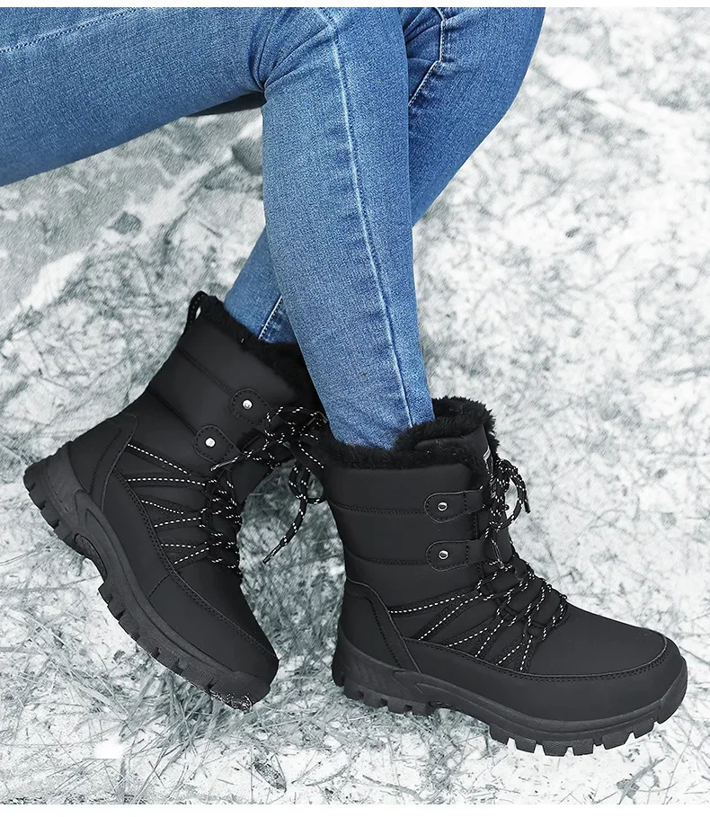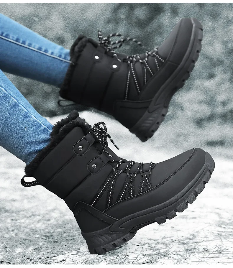 Botas de nieve peludas de alta calidad para mujer, zapatos deportivos cálidos de algodón para exteriores, zapatos transfronterizos de talla grande, cómodos, informales, con punta redonda, para invierno