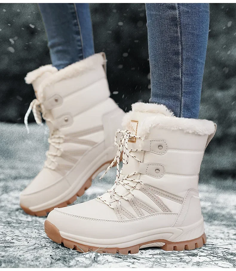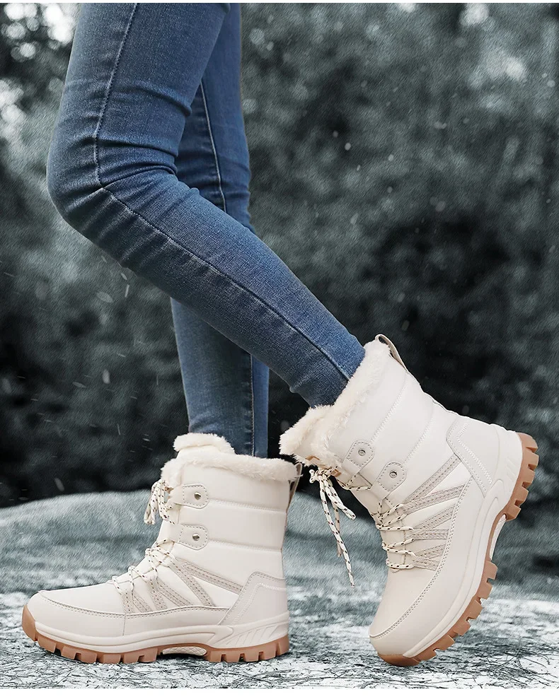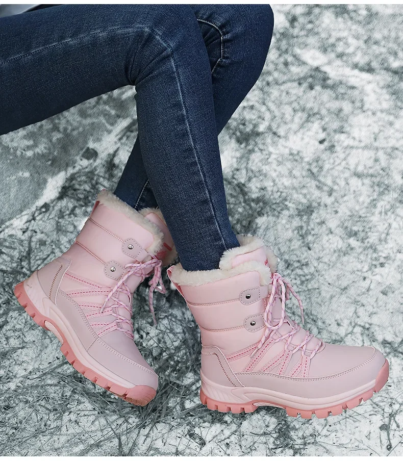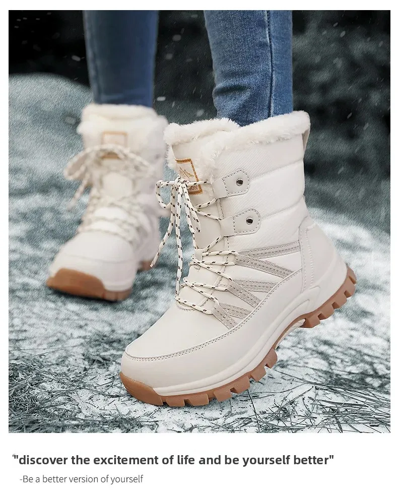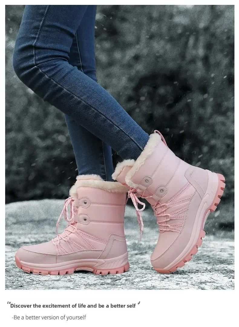 Botas de nieve peludas de alta calidad para mujer, zapatos deportivos cálidos de algodón para exteriores, zapatos transfronterizos de talla grande, cómodos, informales, con punta redonda, para invierno