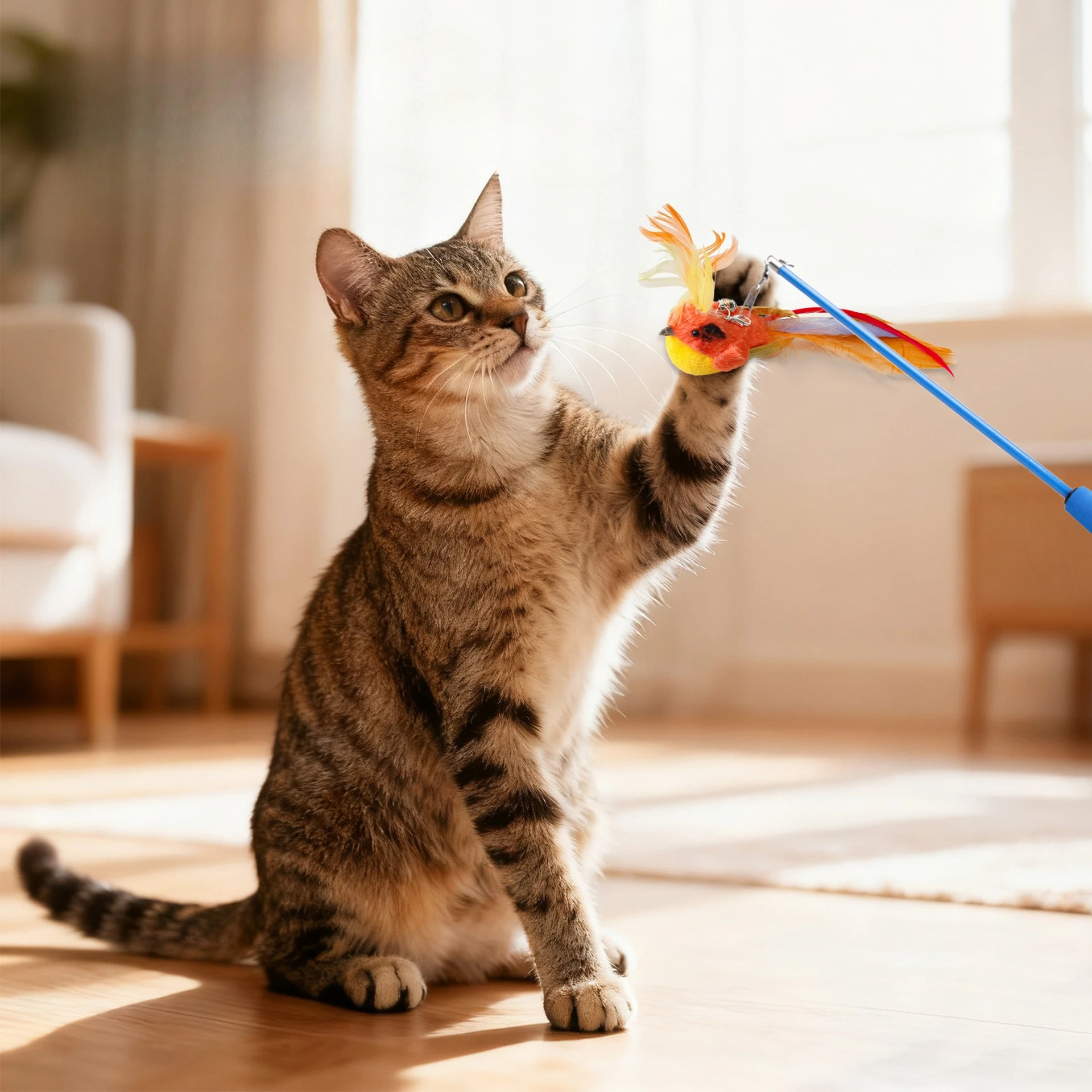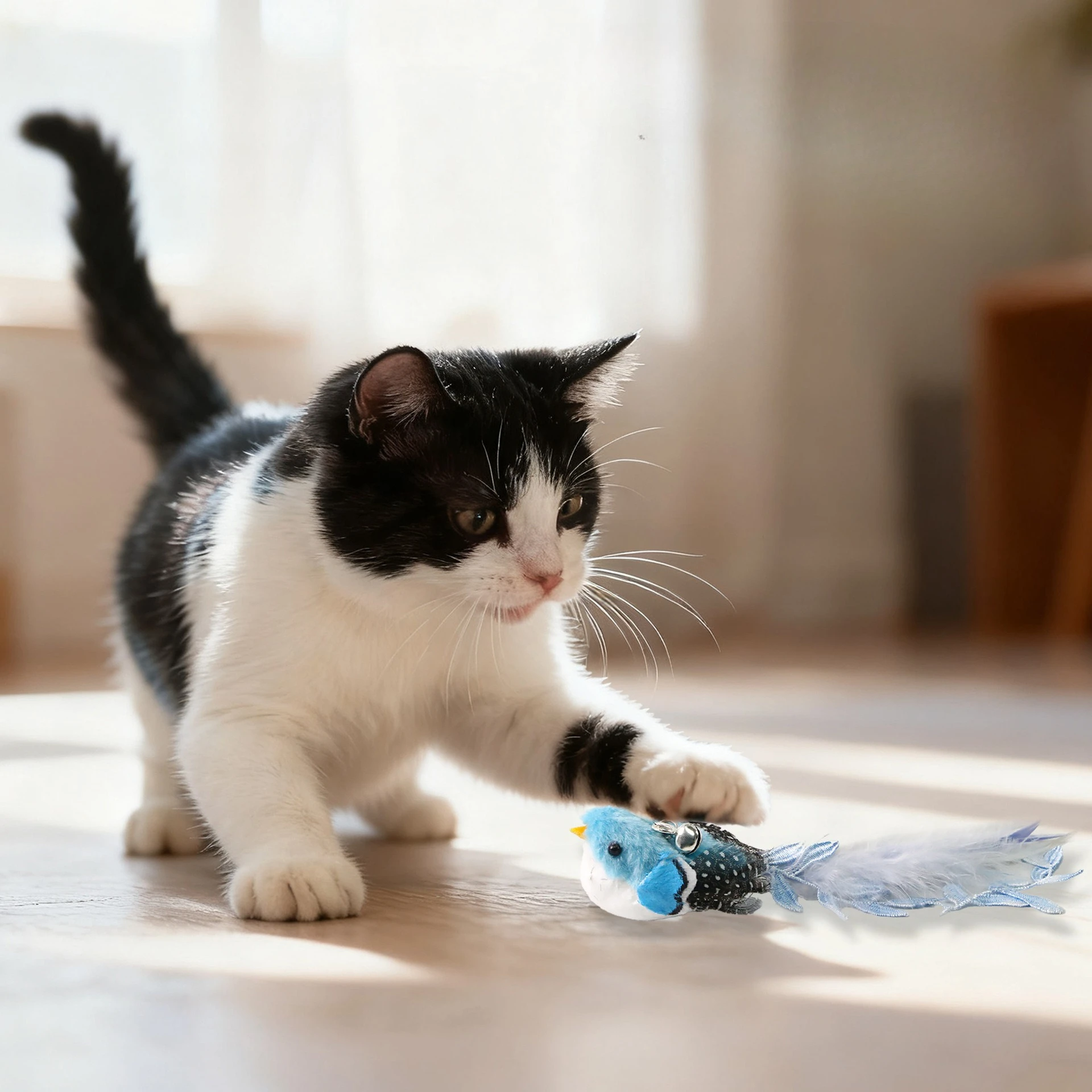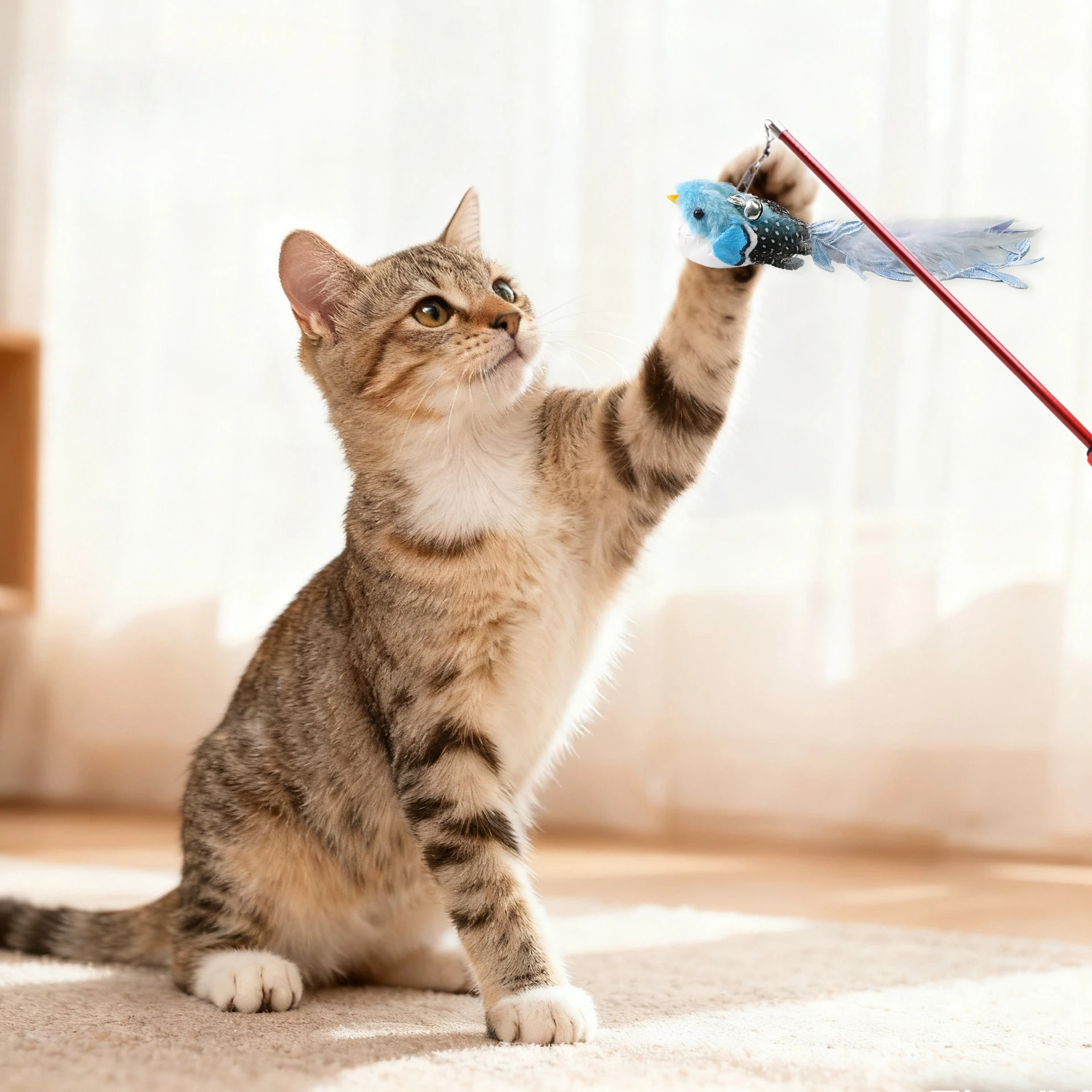 Cabezal de repuesto de pájaro/pluma manos libres con campana, potentes juguetes interactivos para gatos, gatitos, ejercicio de caza, productos para mascotas
