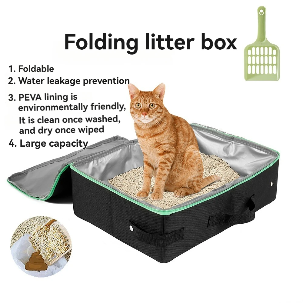 Caja de arena plegable portátil, tela Oxford, impermeable, bandeja para inodoro de viaje para gatos, para uso en interiores y exteriores, suministros para mascotas