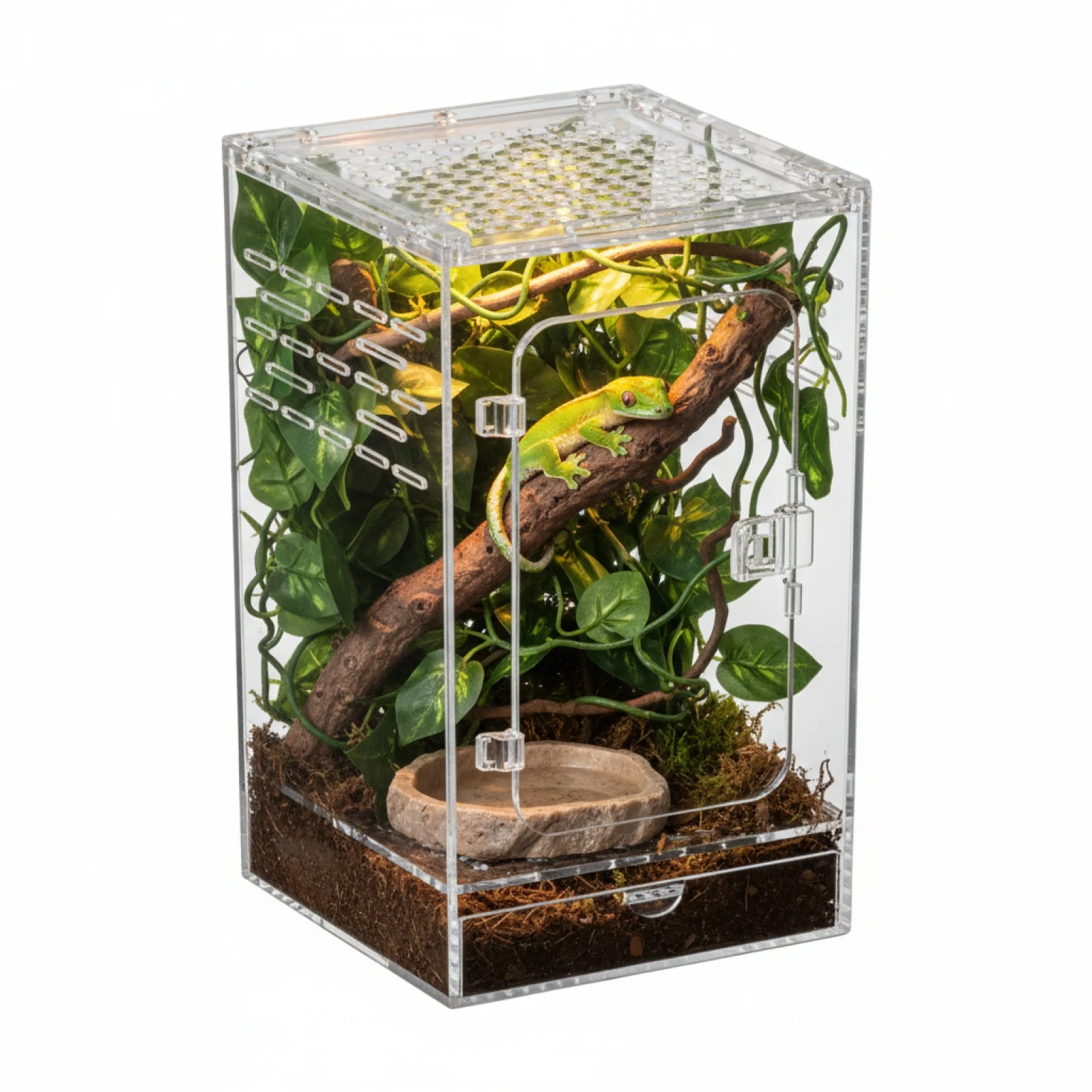Material de primera calidad: el terrario para reptiles está hecho de acrílico de primera calidad para uso a largo plazo y resistencia al desgaste.