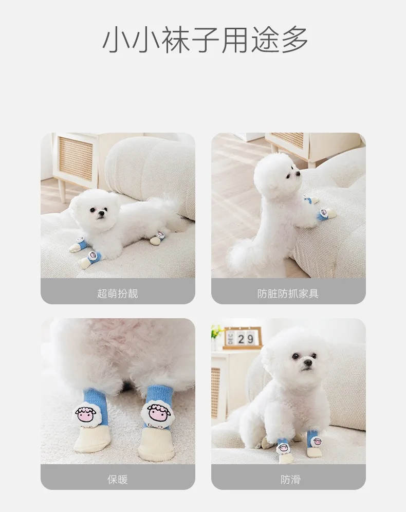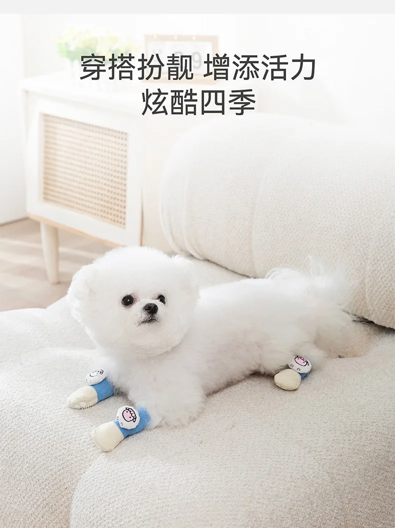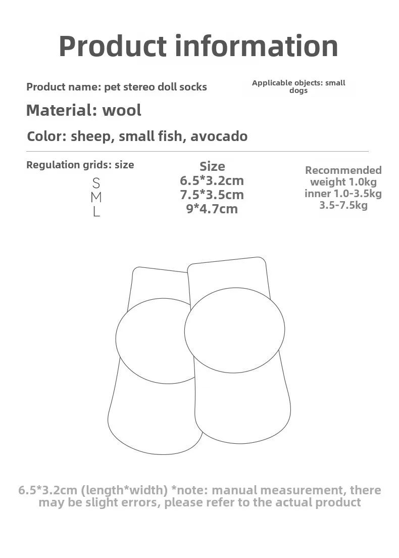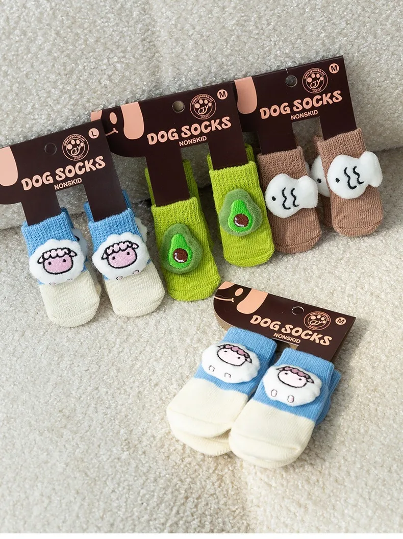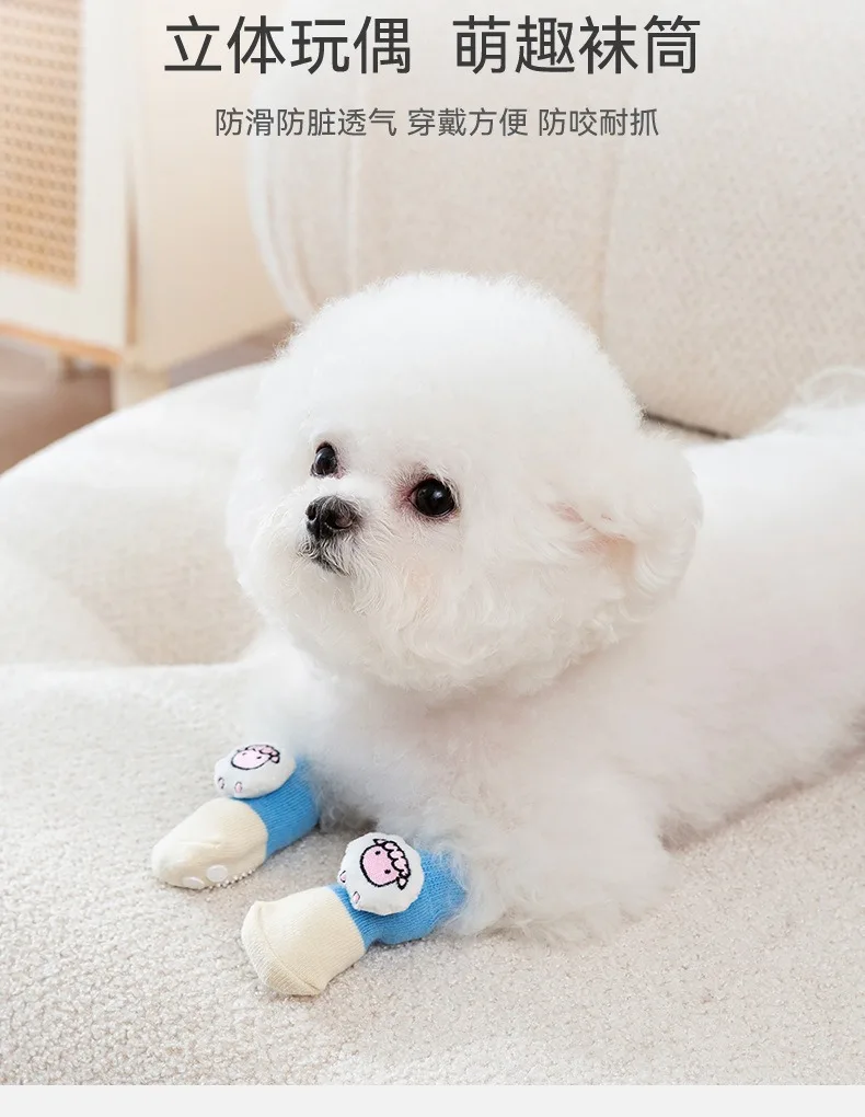 Calcetines para mascotas, cubierta antideslizante y antisuciedad para pies de perro, muñeca tridimensional, calcetín de algodón para cachorros, calcetines para perros medianos y pequeños