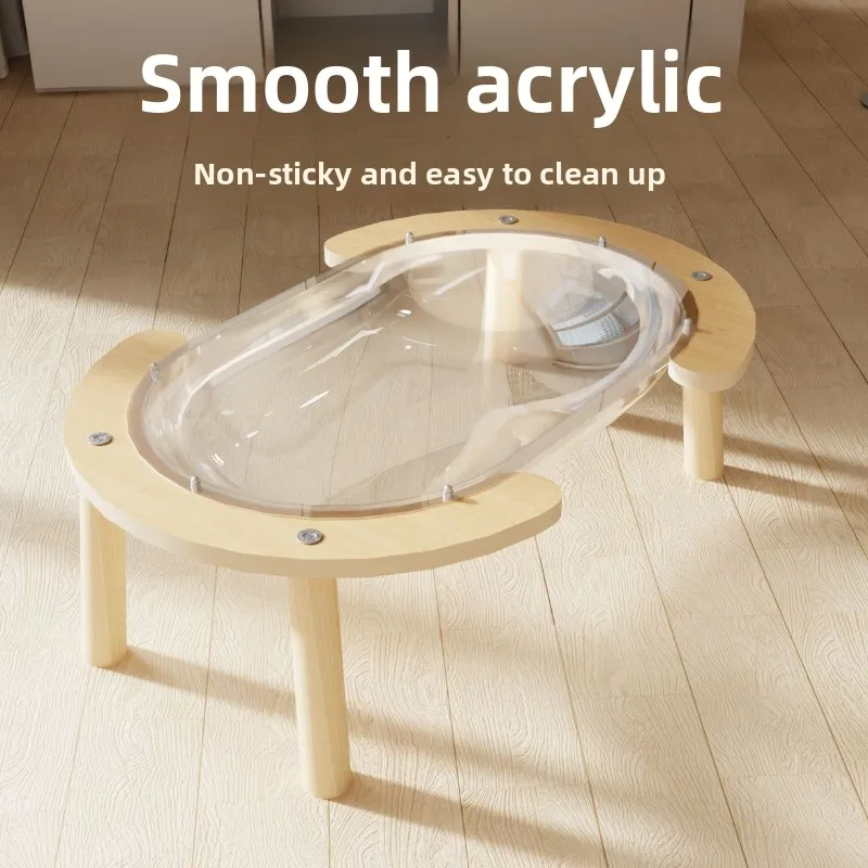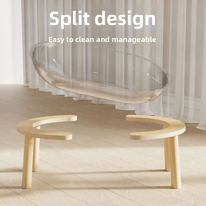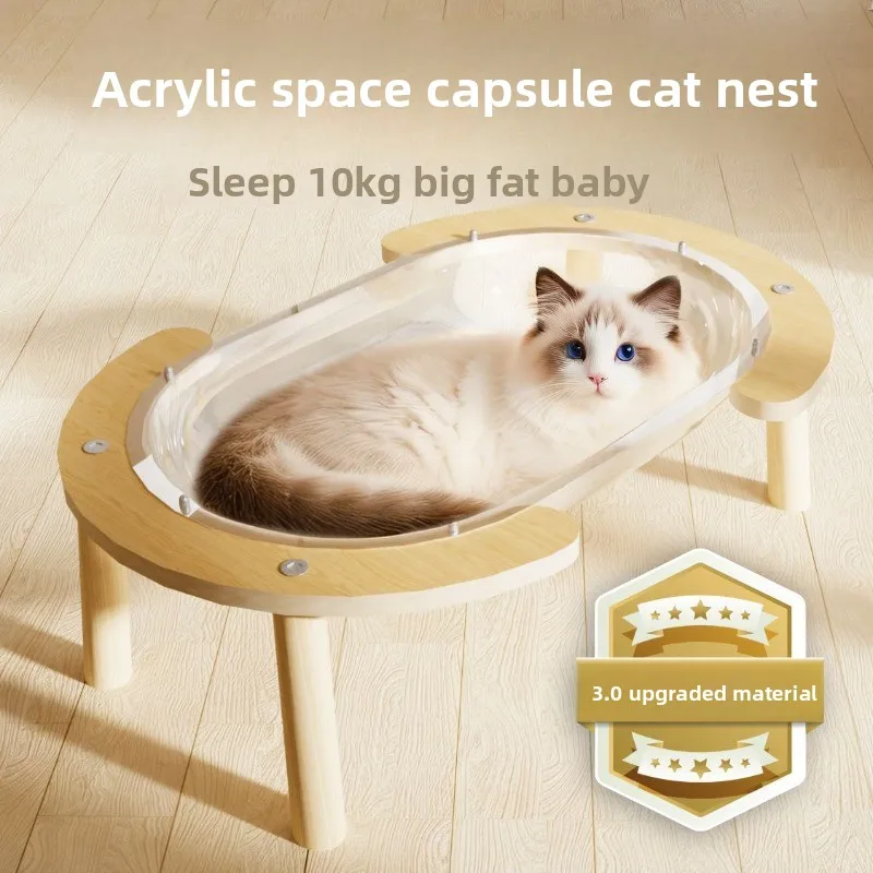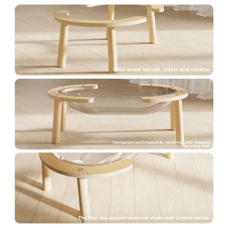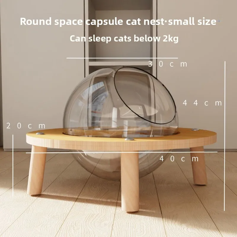 Cama para gatos con bola redonda acrílica transparente, a prueba de humedad, para todas las estaciones, marco de madera, juguetes para mascotas, accesorios para el hogar, verano