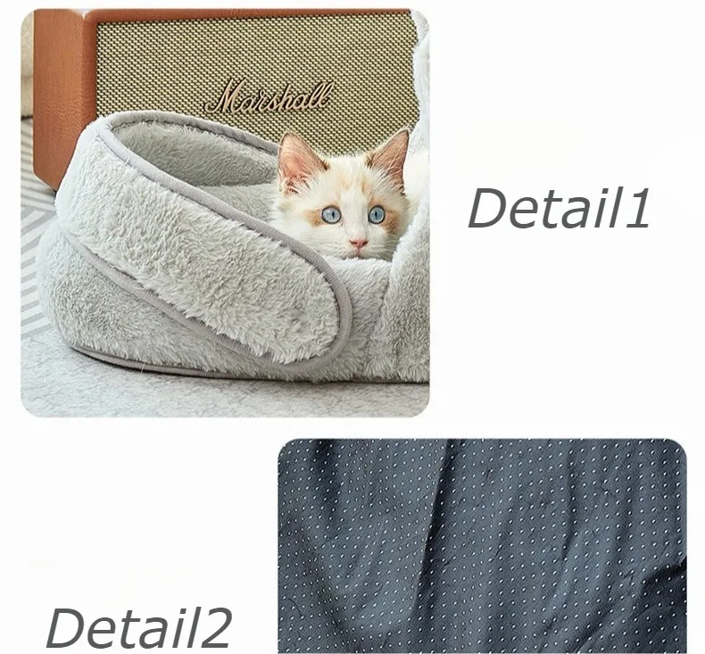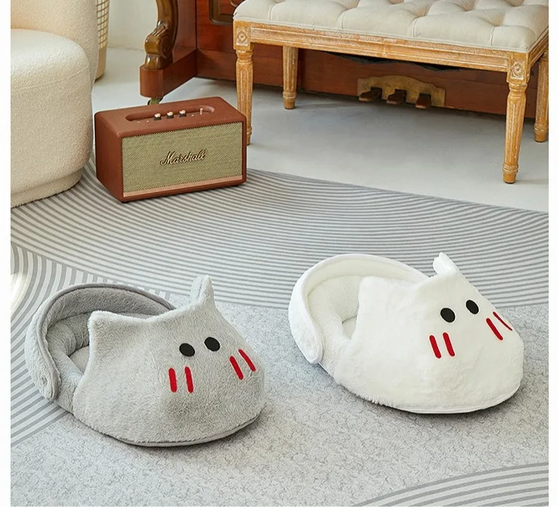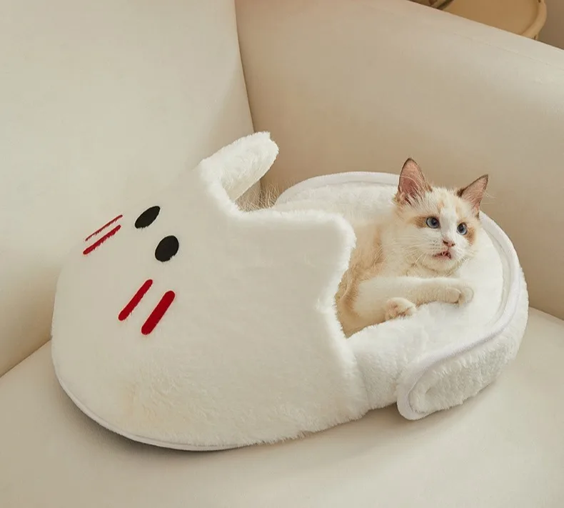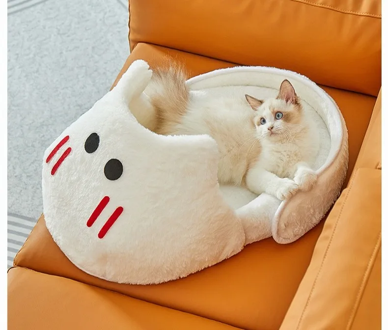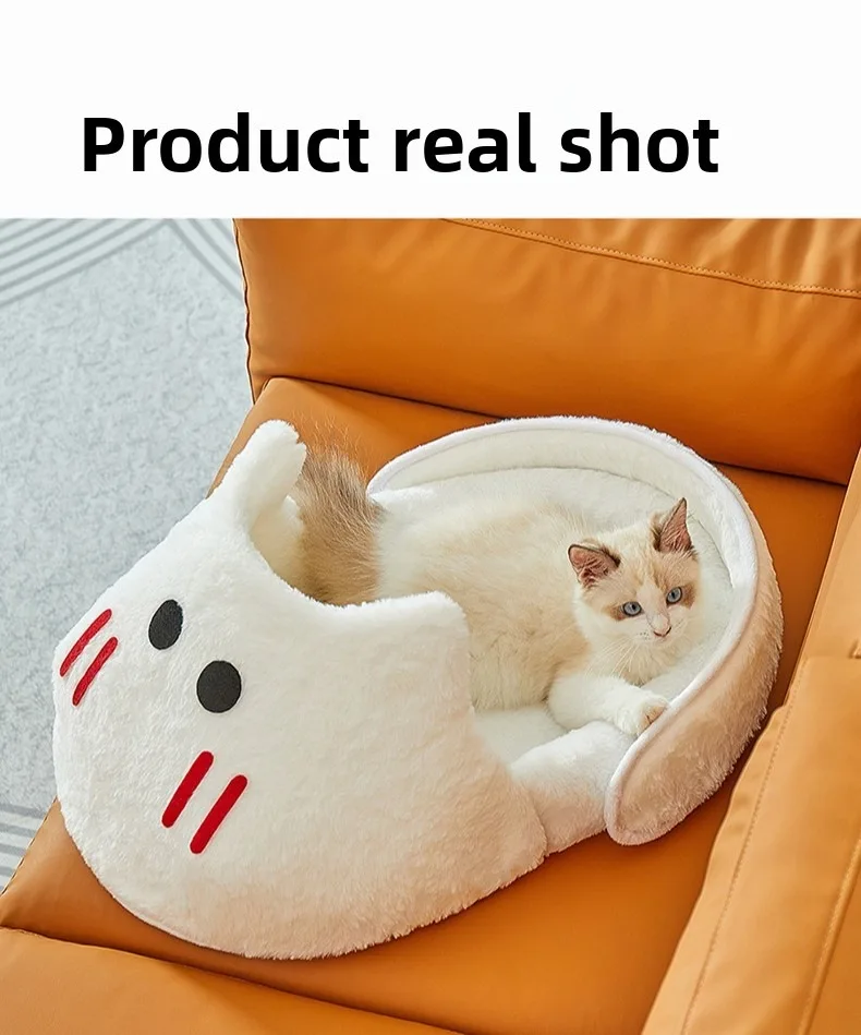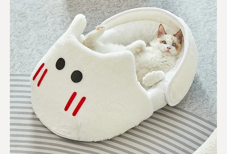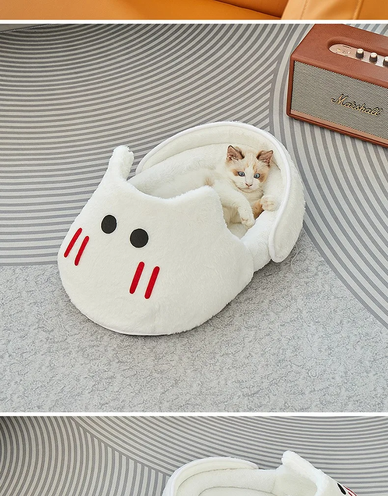 Cama para gatos de peluche semicerrada, cama suave, cómoda y cálida para gatos, cama creativa para dormir en interiores de lana esponjosa para perros pequeños y medianos