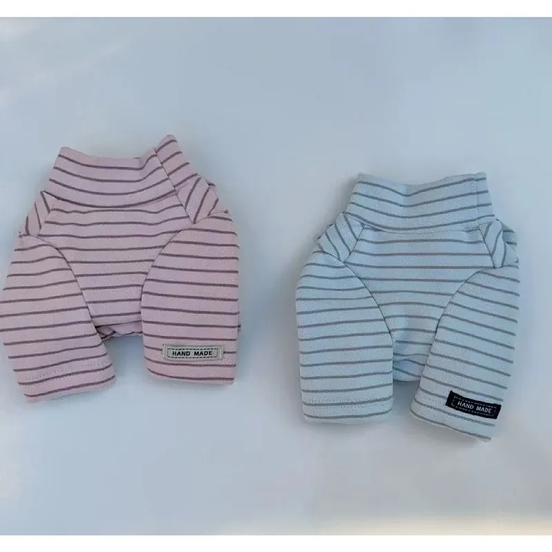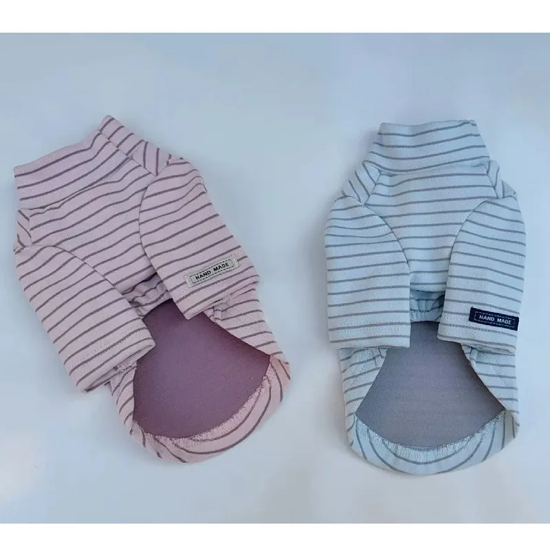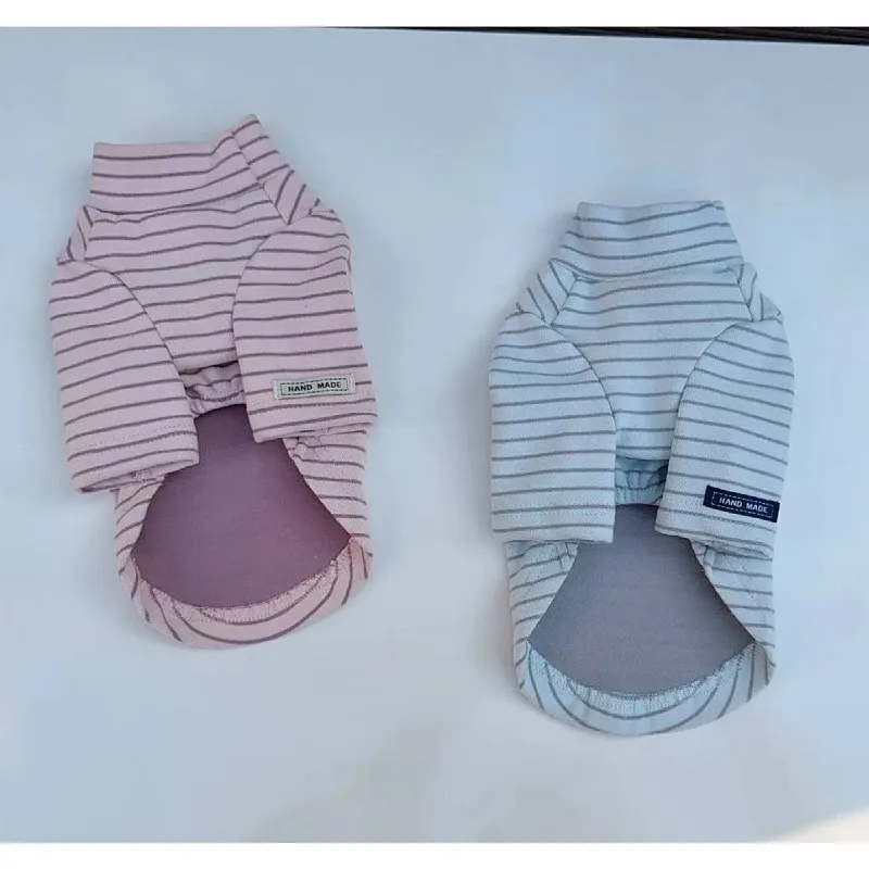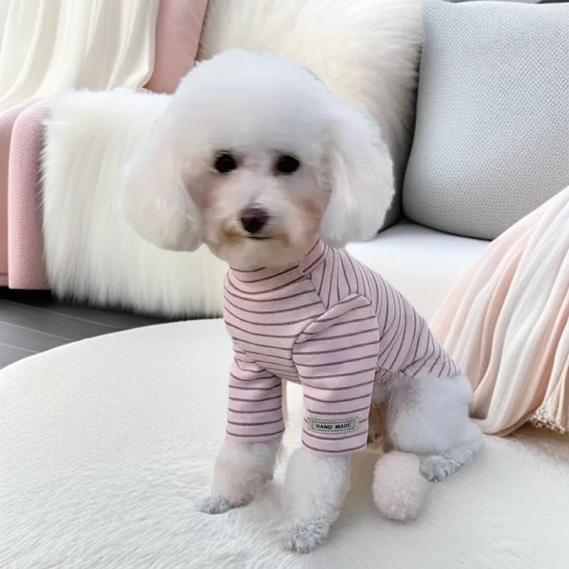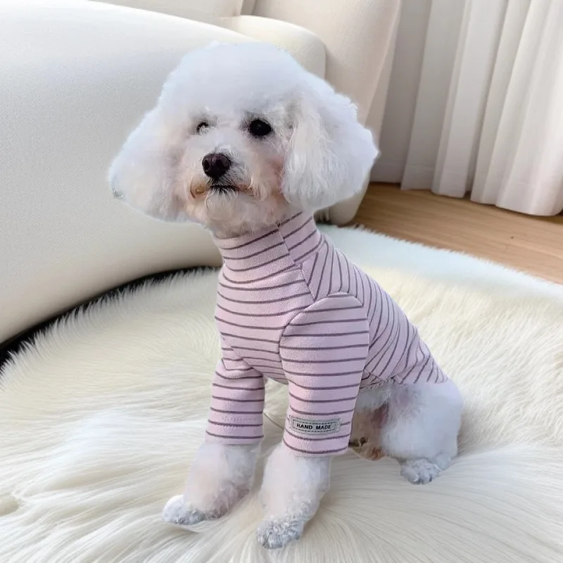 Camisa básica a rayas para el hogar de gatos, camiseta de cuello alto de peluche, ropa para cachorros, ropa para perros pequeños, otoño e invierno