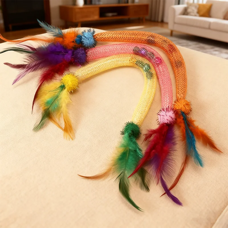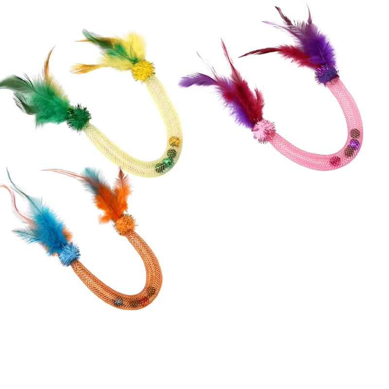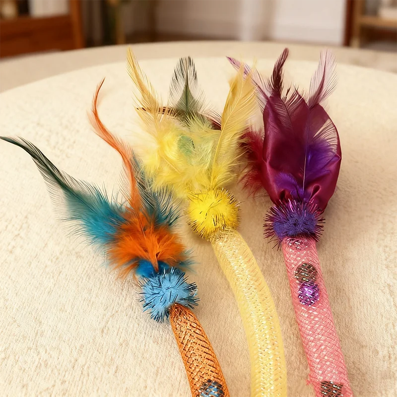 Con campanas de plumas, juguete interactivo para gatos, hierba gatera, resistente a mordeduras, juguete para aliviar el aburrimiento