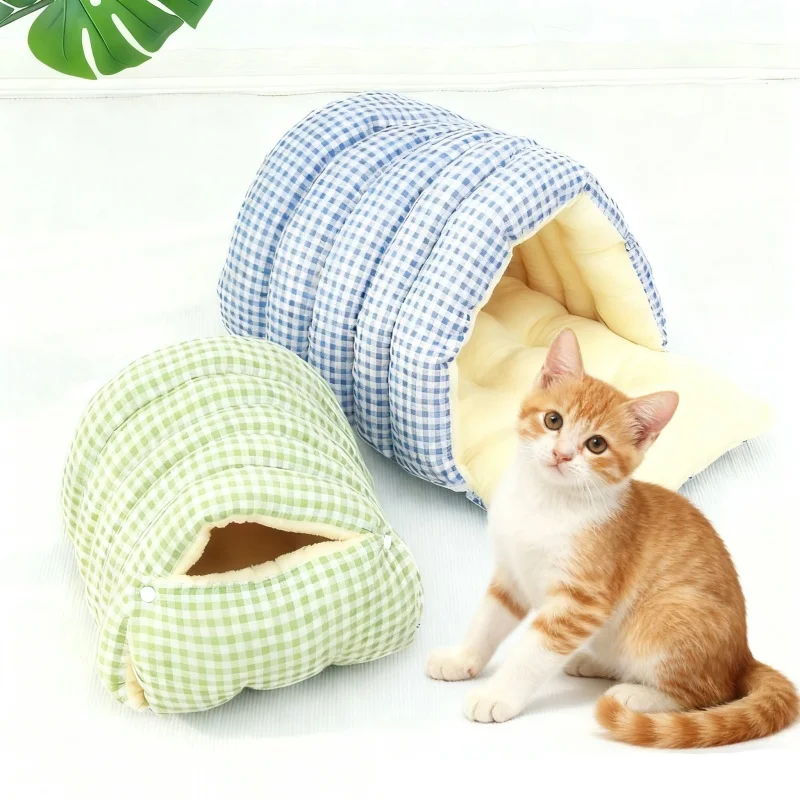 El exterior está hecho de tela duradera a cuadros, mientras que el interior está forrado con un material suave y esponjoso con el que a tu gato le encantará acurrucarse.La estructura cerrada proporciona un espacio privado para que su gato descanse, juegue o observe su entorno.Es liviano y compacto, lo que facilita su colocación en cualquier lugar de su hogar, desde el salón hasta el dormitorio.