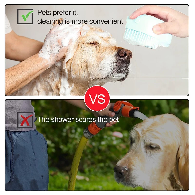 With 2 in 1 design, shampoo foam distribution is more even. This Dog Shampoo Brush not only can provide a quick and all-round thorough washing of your pets, but also eliminate shower clutters. And the non-slip ring hand grip design offers you a comfortable grasp, easier to make a bath grooming for your pets.