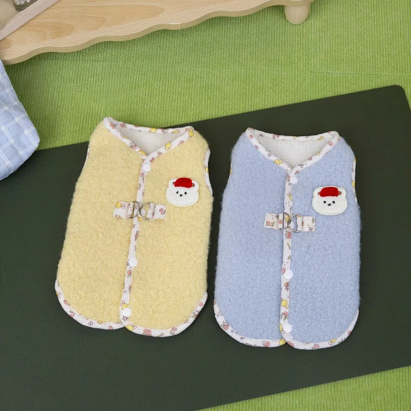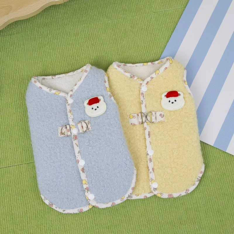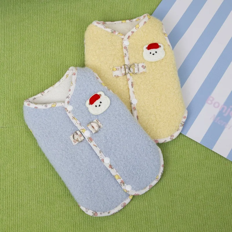 Chaleco Adorable de peluche bonito, sombrero para mascota, chaqueta de oso, ropa cálida de invierno para perros pequeños a medianos, abrigo de dibujos animados Bichon Frise