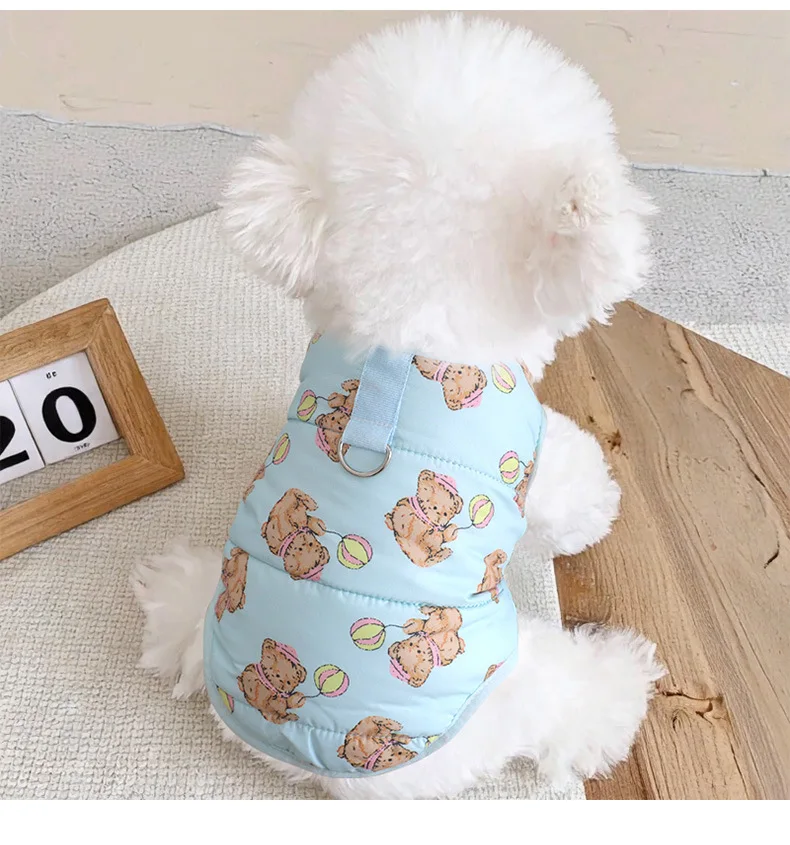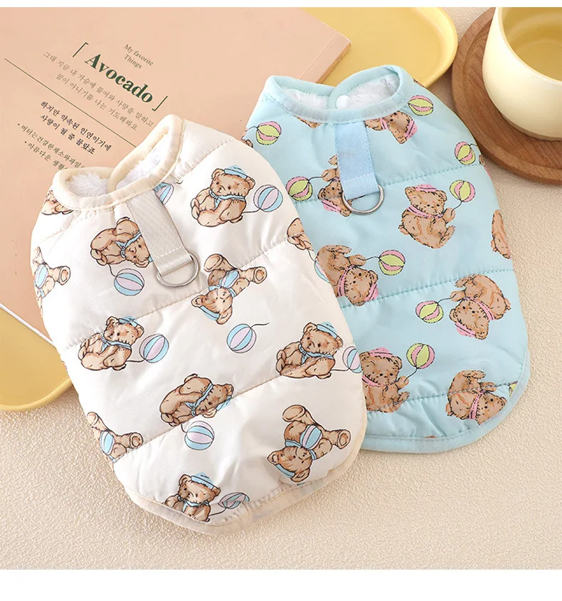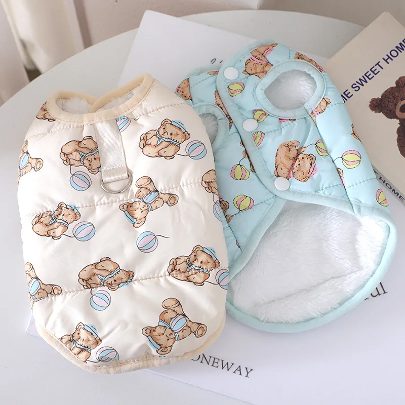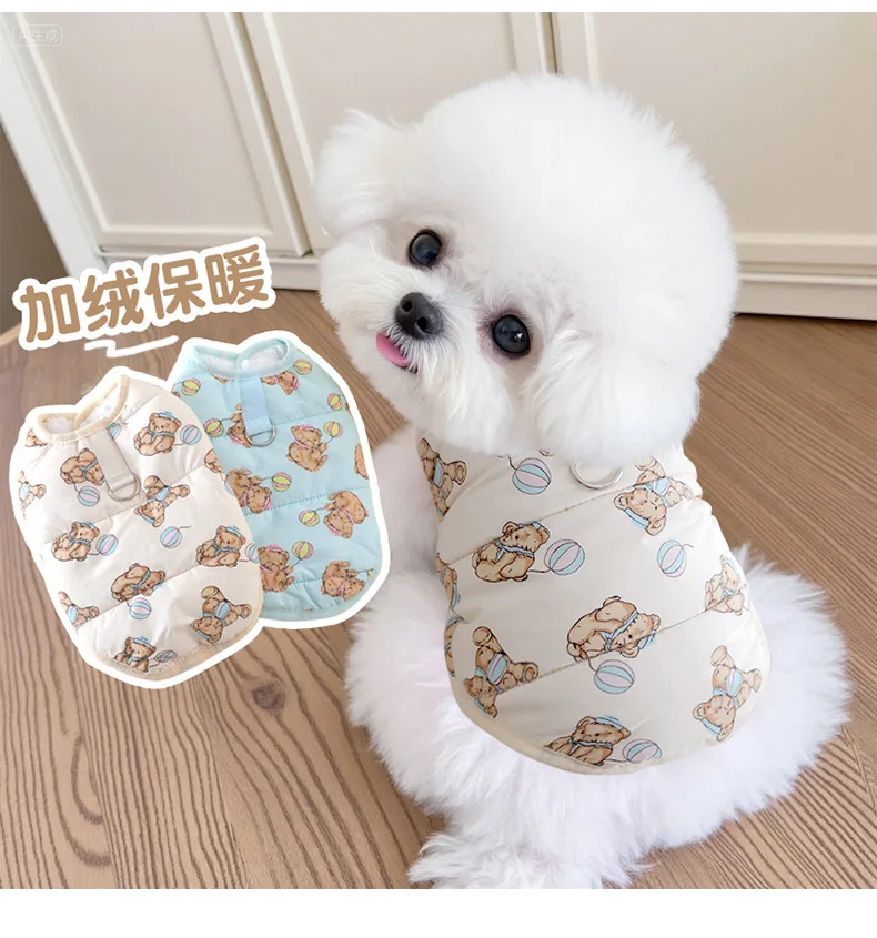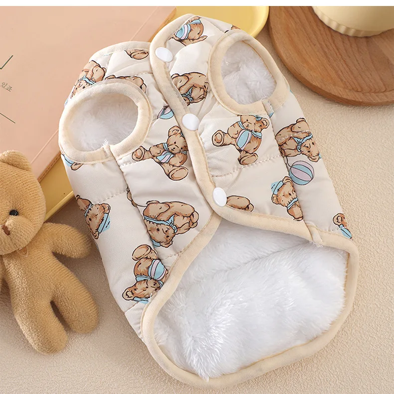 Chaleco grueso y cálido para mascotas, chaleco con estampado de osito bonito, abrigo para perros pequeños, ropa para perros pequeños, ropa para cachorros, otoño e invierno