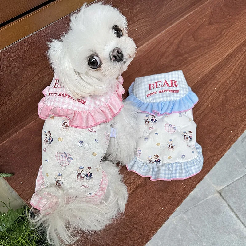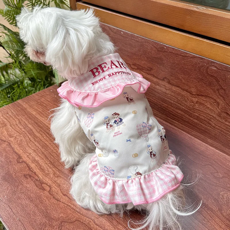 Chaleco de plumas para mascotas, bonito abrigo bordado de encaje para otoño/invierno, chaleco cálido para gatos, chaleco de encaje con oso de amor, ropa para cachorros pequeños