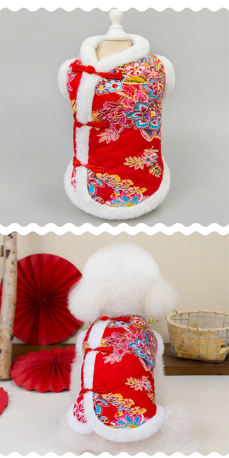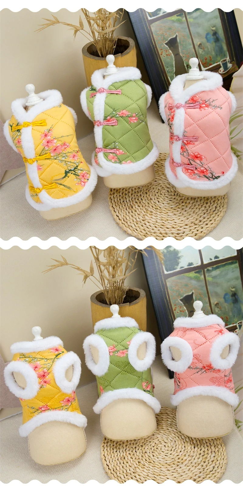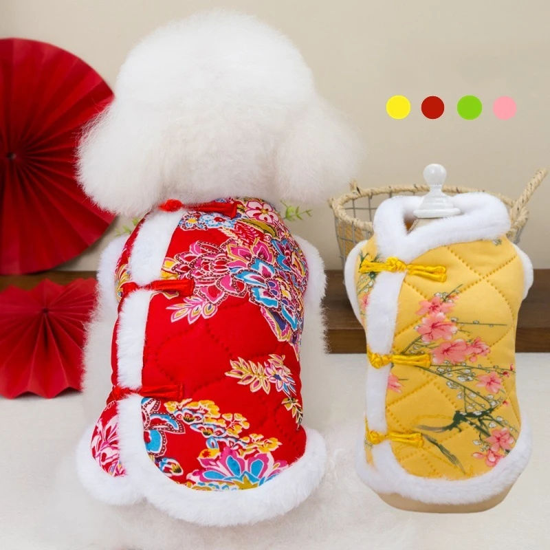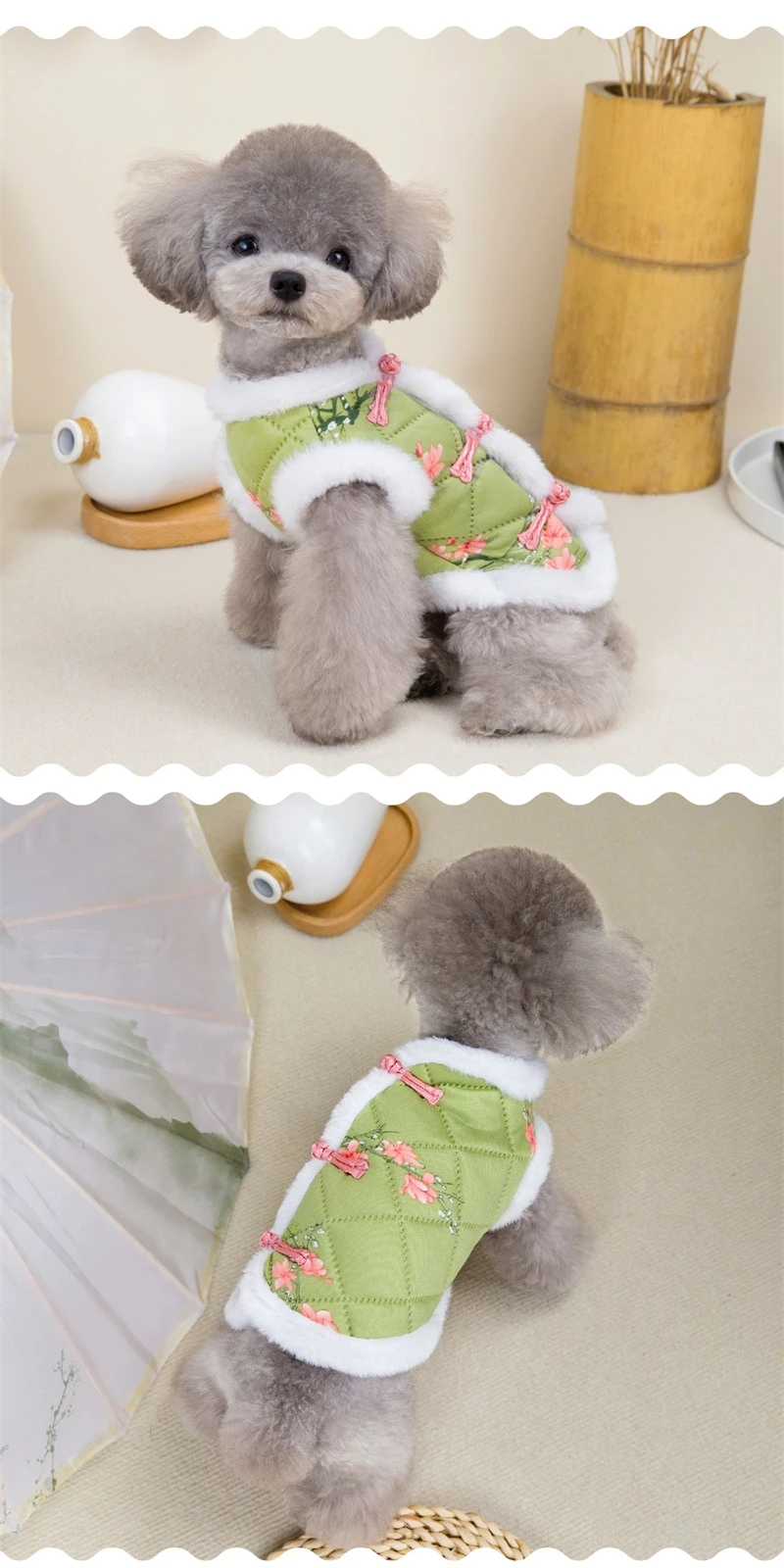 Chaqueta de invierno con estampado Floral para perros, ropa de ocio de algodón transpirable para gatos, abrigos de gatito Chihuahua con nudo de moda china