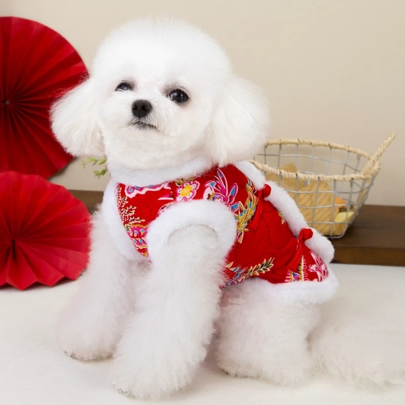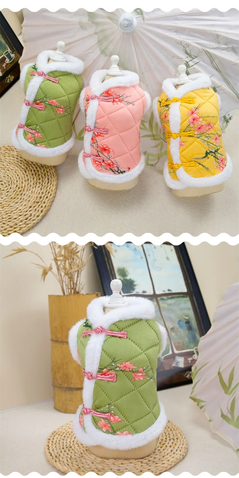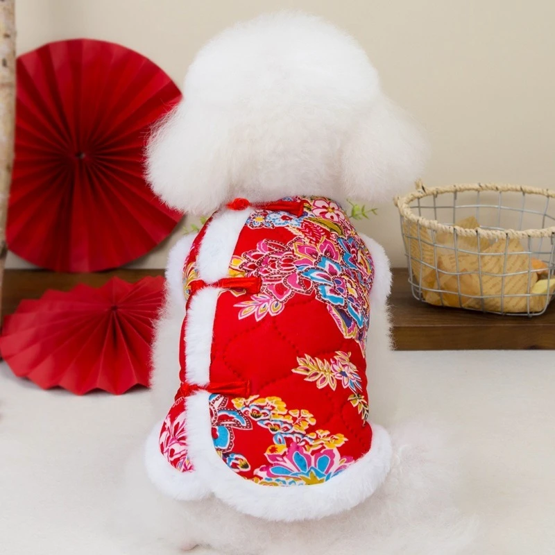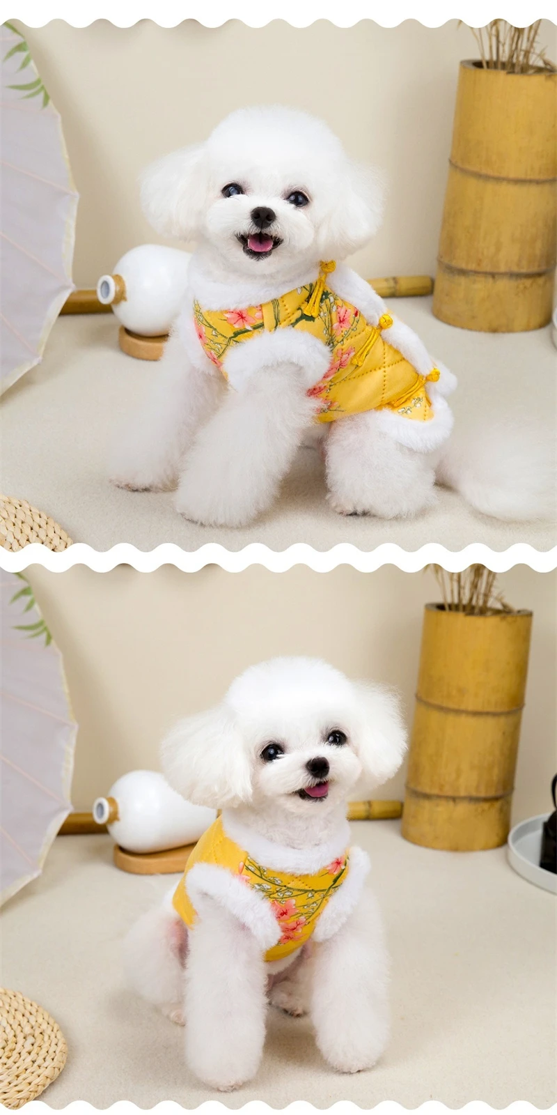 Chaqueta de invierno con estampado Floral para perros, ropa de ocio de algodón transpirable para gatos, abrigos de gatito Chihuahua con nudo de moda china