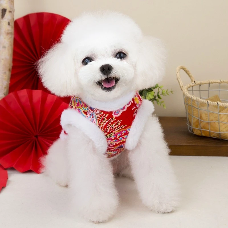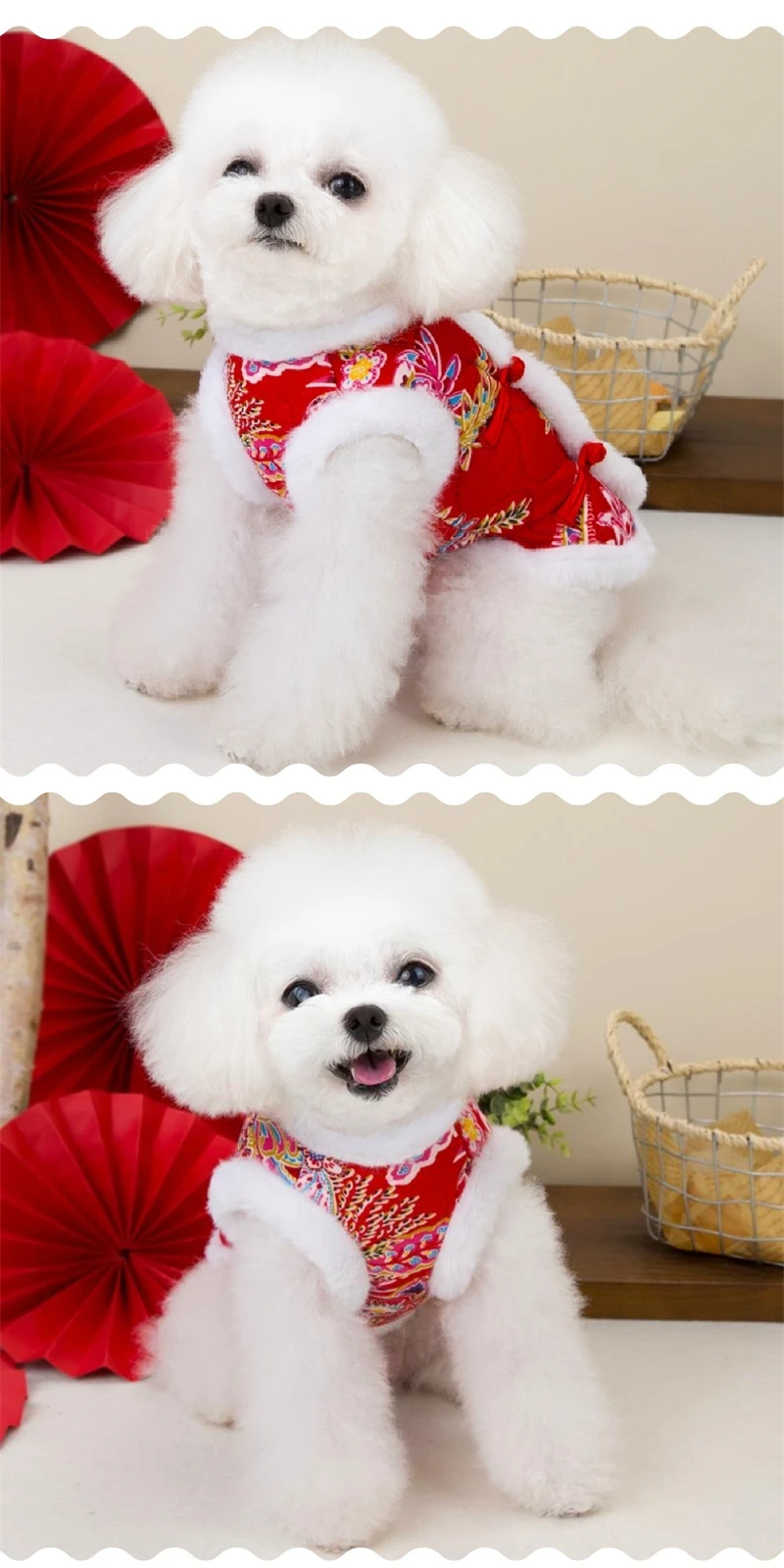 Ropa de cuatro patas de terciopelo para perros, conjunto de dibujos animados para mascotas, vestido cruzado, ropa para cachorros pequeños y medianos, Otoño e Invierno