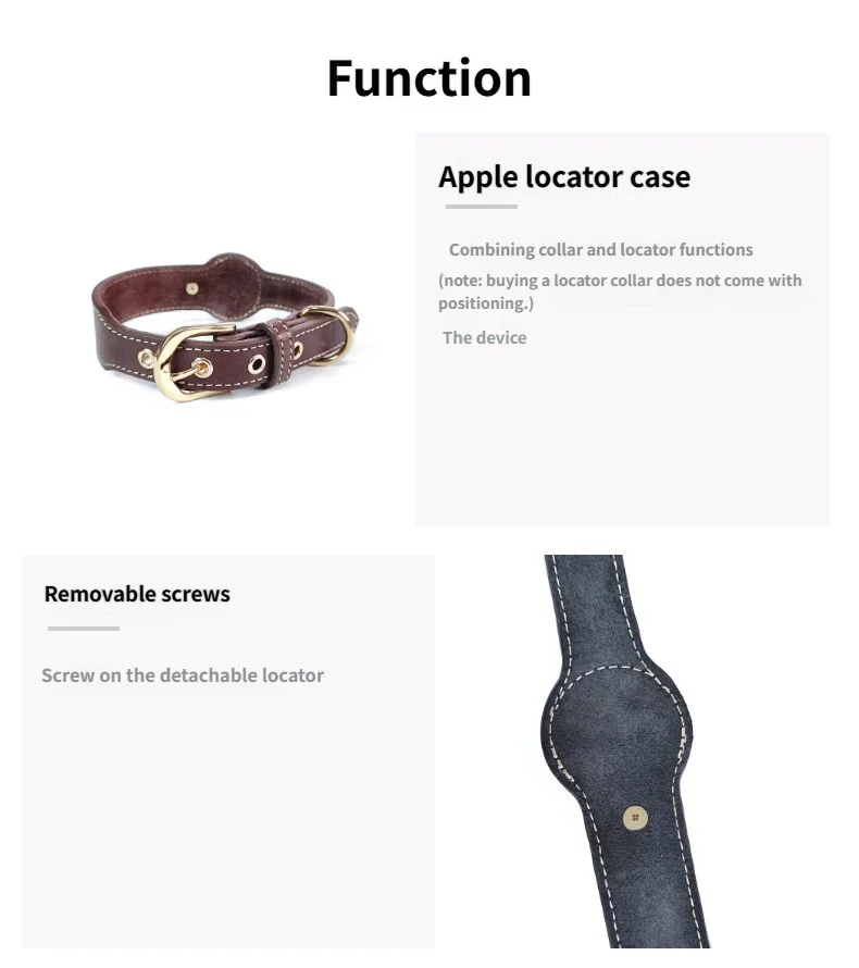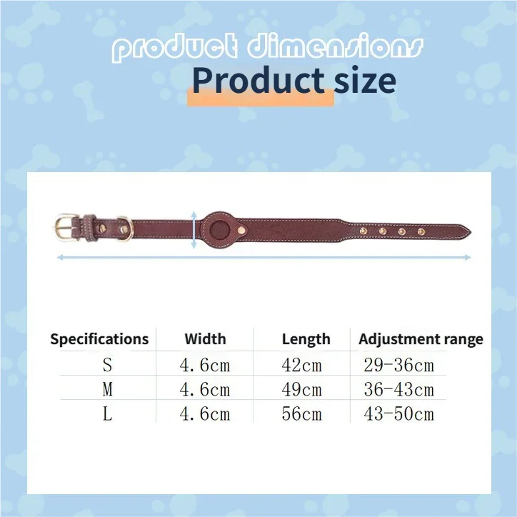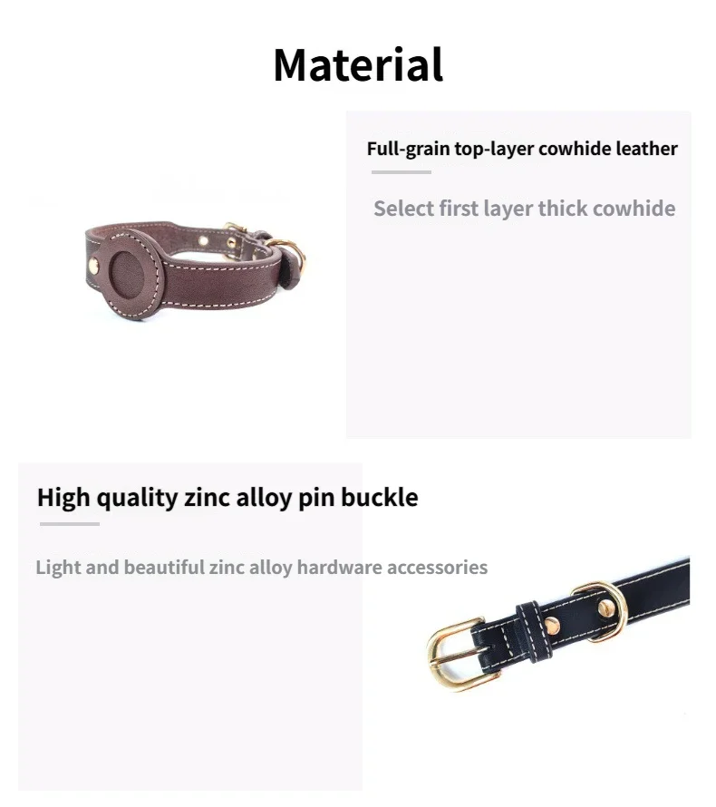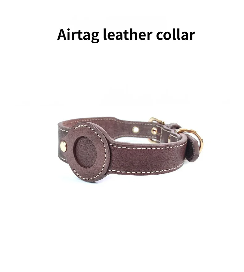 Collar de cuero para perro AirTag, Collar para mascotas hecho a mano auténtico y resistente con soporte para etiqueta de aire, collares ligeros con GPS para mascotas