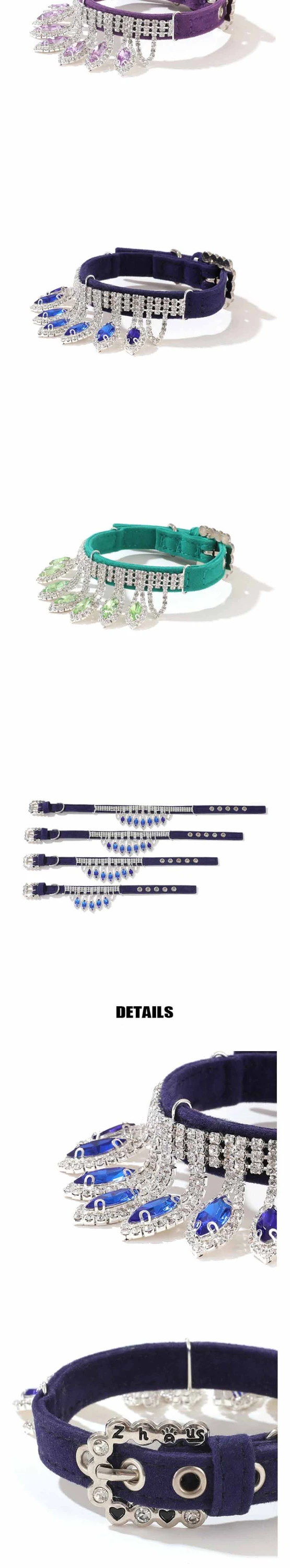 Collar con diamantes de imitación para perro y gato, Collar de cristal de lujo para cachorro y gatito, colgante de diamante, Collar ajustable de cuero de terciopelo suave para mascota para gato
