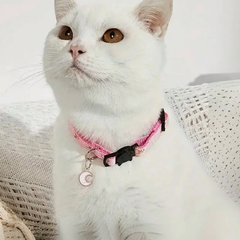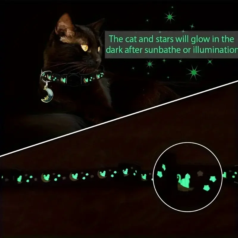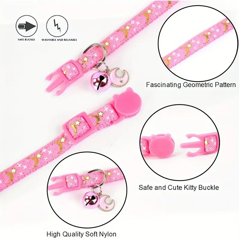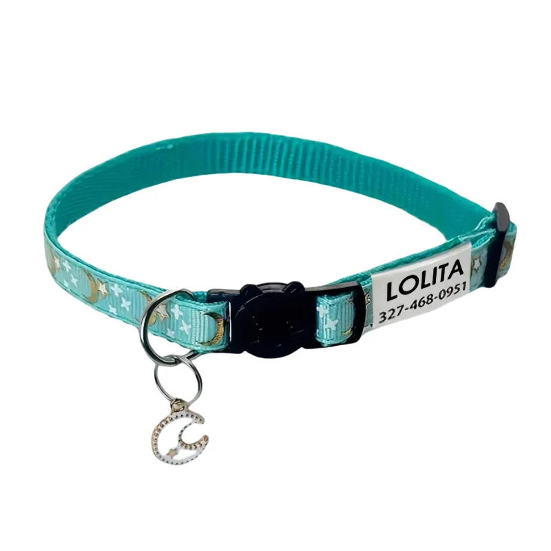 Collar con etiqueta de identificación de gato personalizado con campana, estrella, Luna, perro, cachorro, gatito, Collar con anillo de seguridad ajustable, joyería para gato