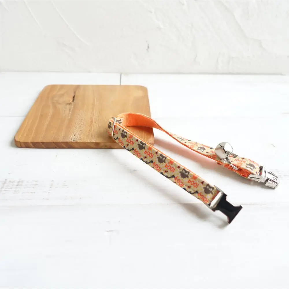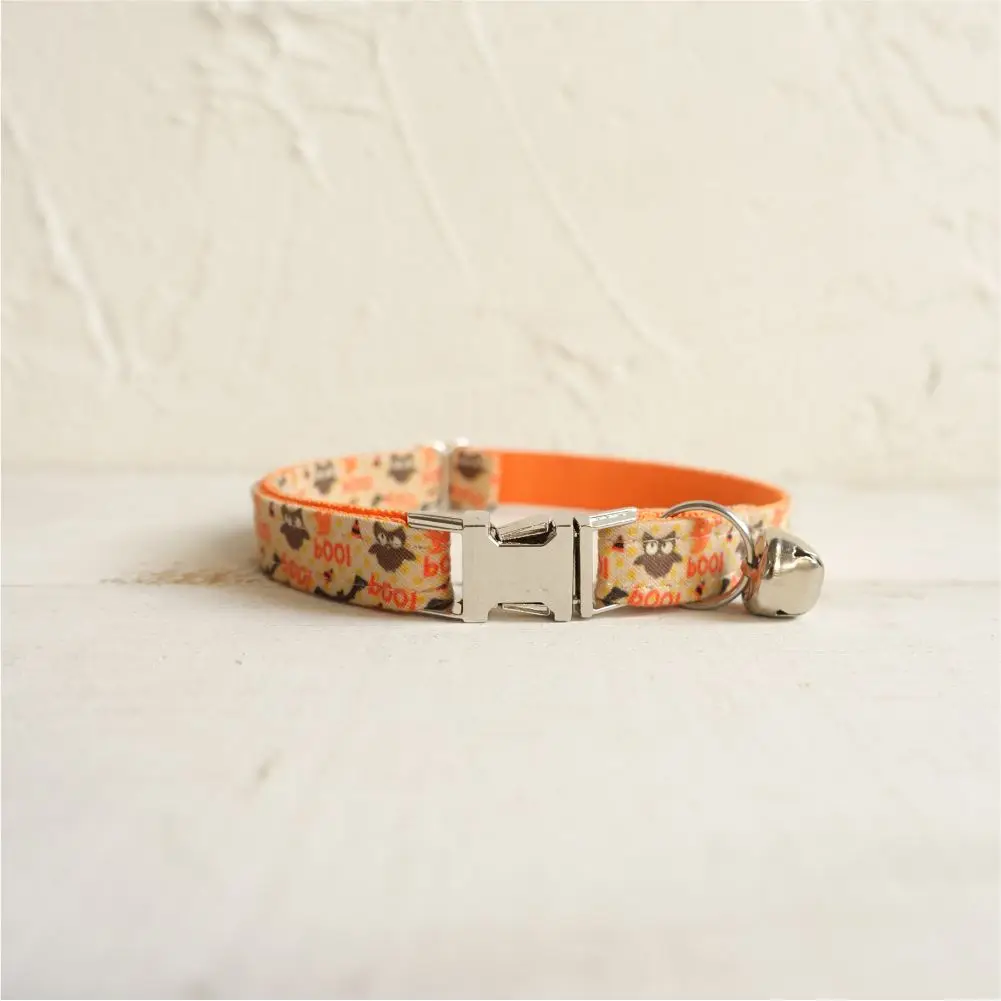Nombre del producto: Collar de gato personalizado con grabado gratuito, correa para mascotas a juego, hebilla de metal con contactos personalizados, Collar para mascotas con murciélagos de Halloween