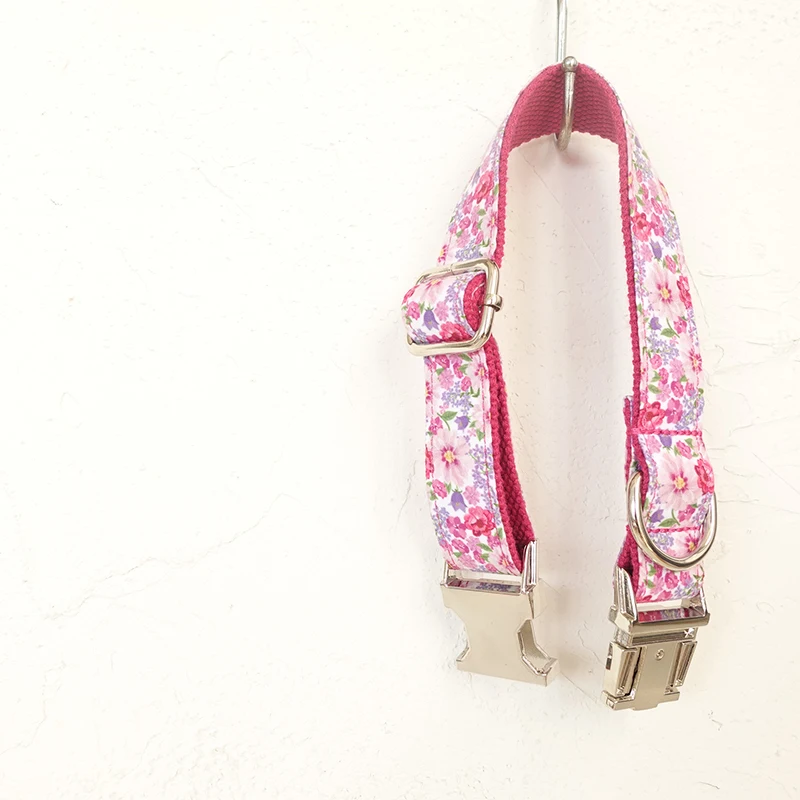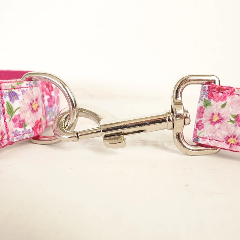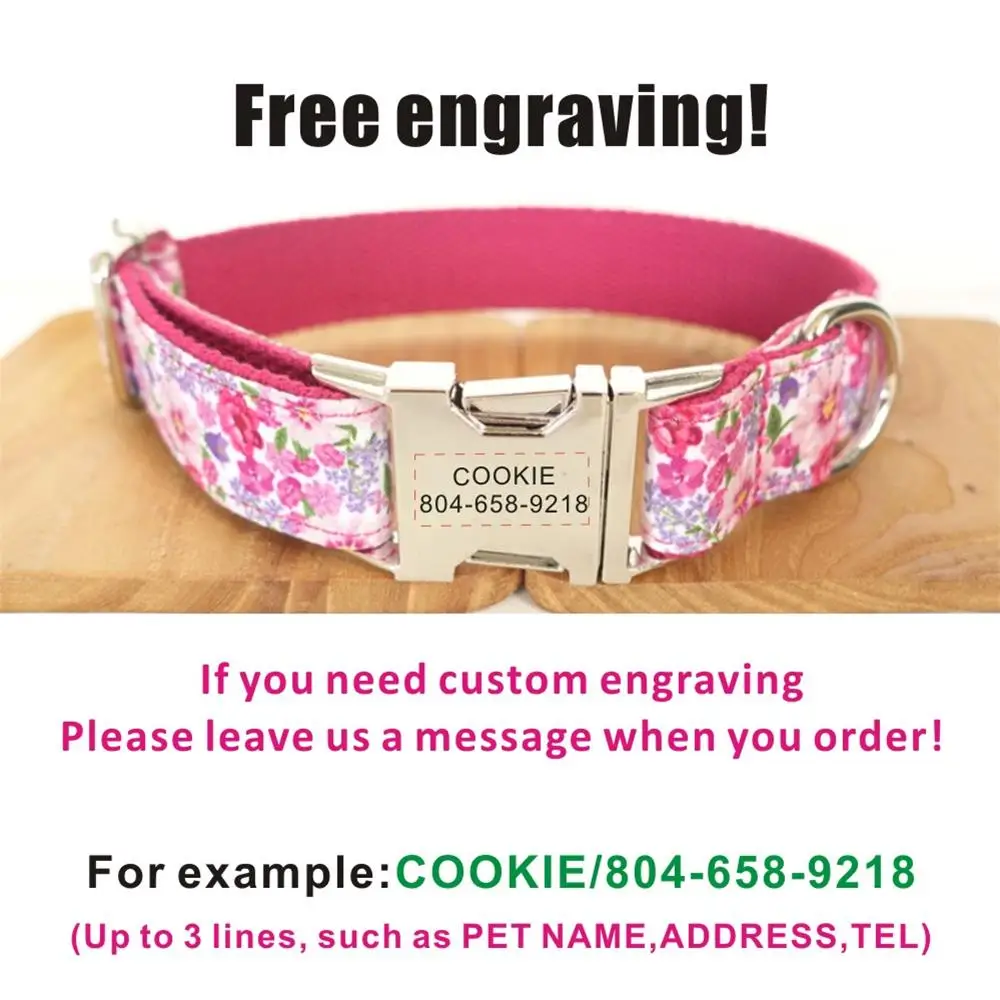 Nombre del producto: Collar personalizado para mascotas, placa con identificación personalizada, etiqueta de identificación, collares ajustables de flores rosas para perros y gatos, juego de correa de plomo