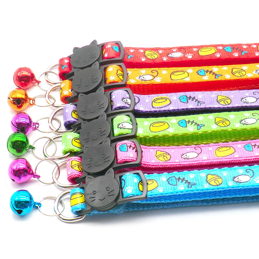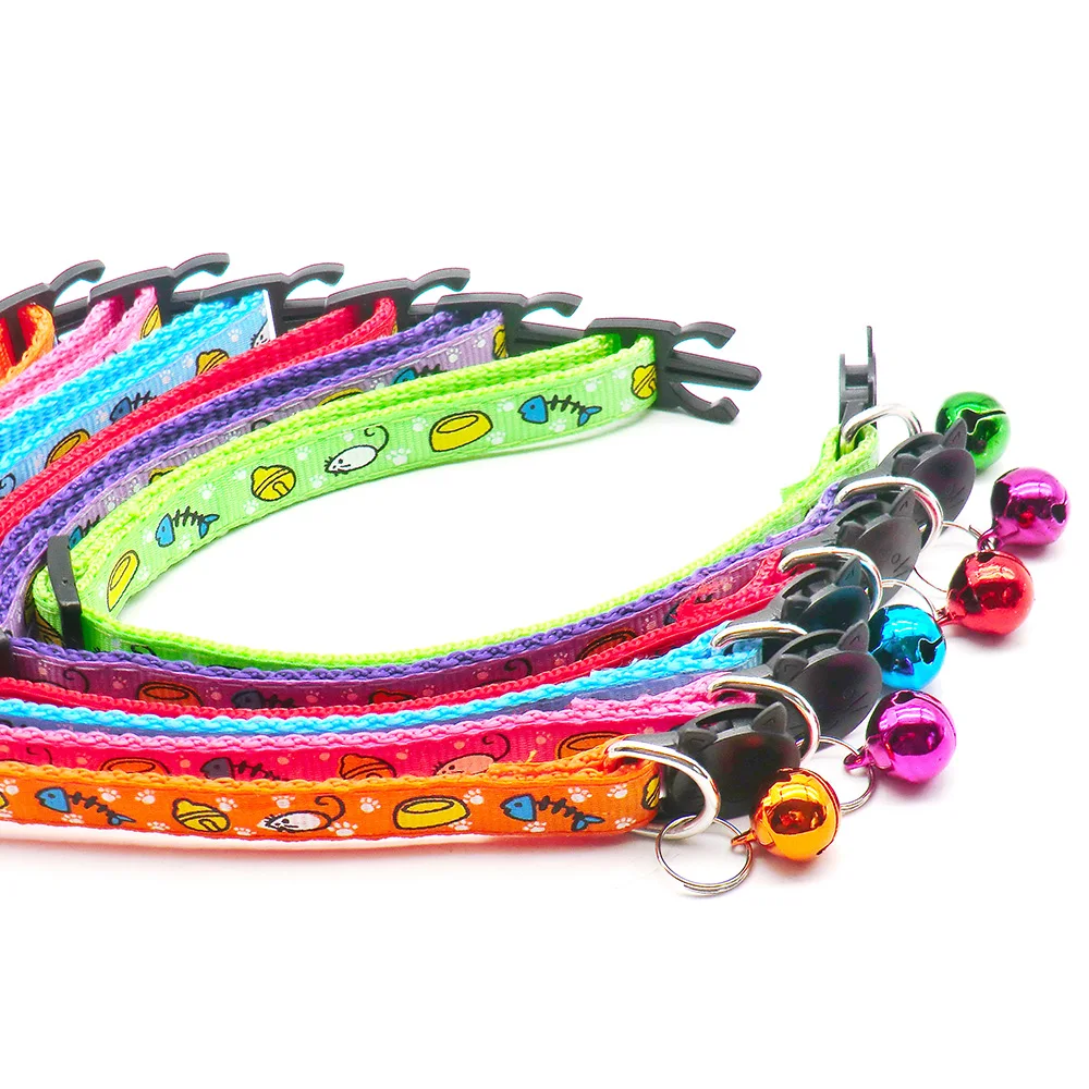 Venta al por mayor de 100 piezas gato delicado seguridad Casual poliéster perro lazo cuello correa ajustable ratón campana accesorios para mascotas