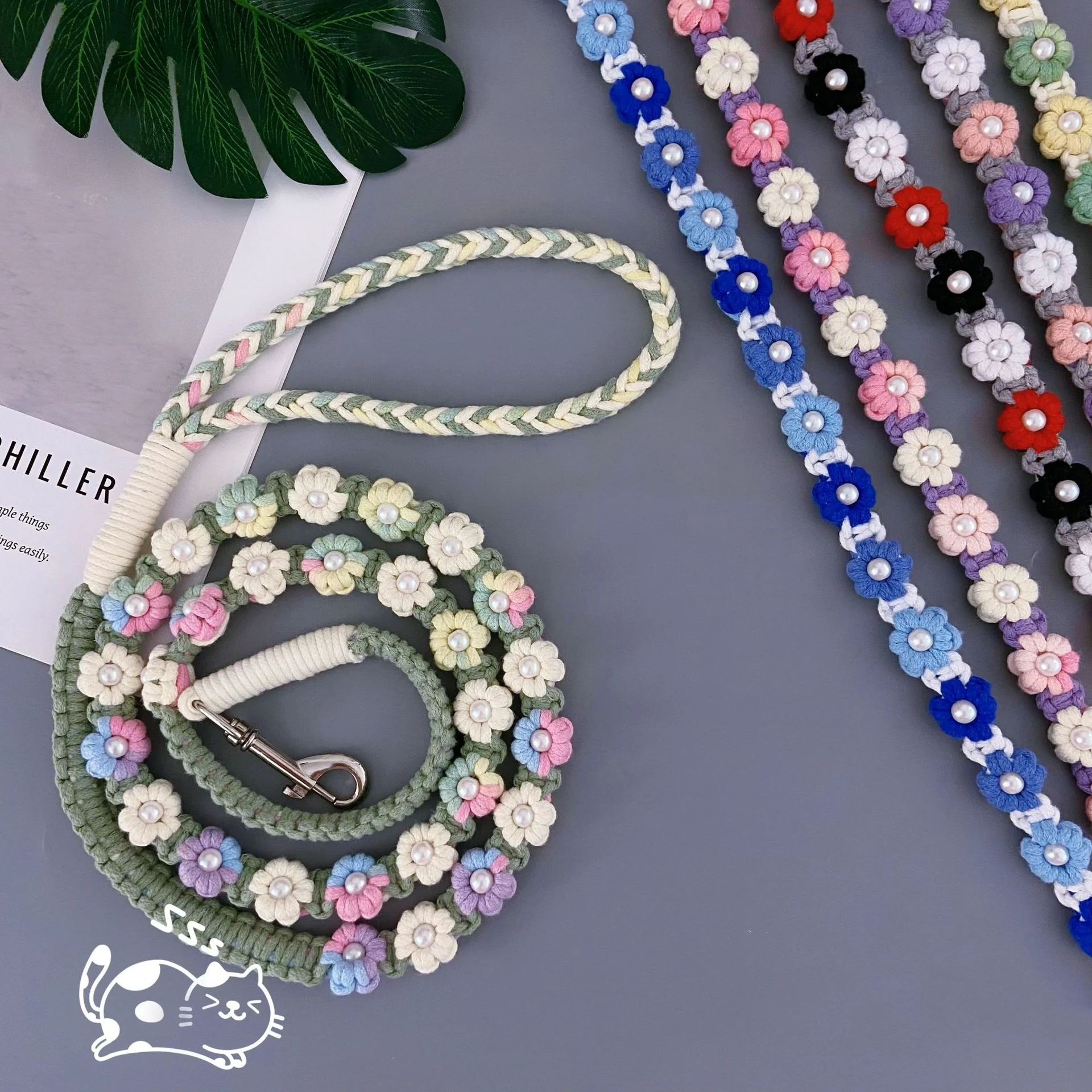 Correa trenzada hecha a mano para perro de 5 pies, diseño Floral, correas para mascotas, cuerda de algodón para caminar y entrenar, cuerda de tracción tejida a mano para mascotas