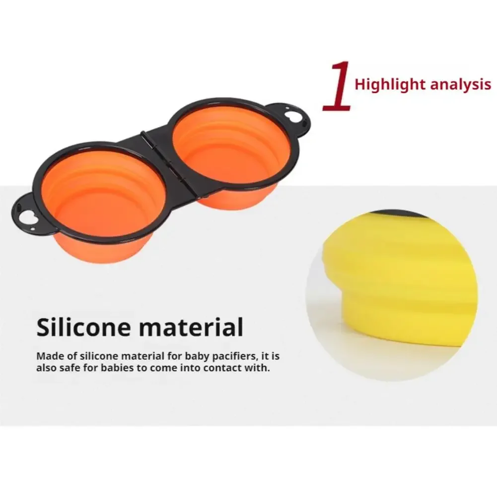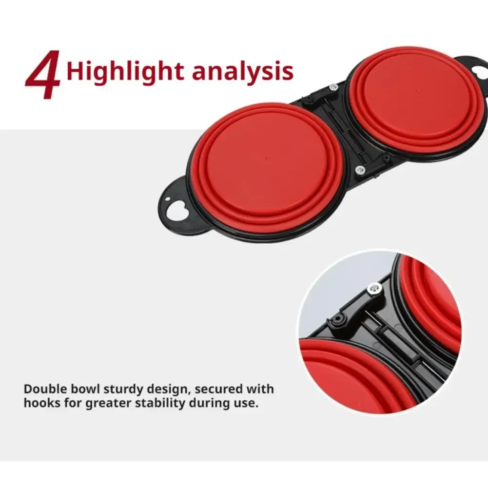 ¡Mantenga las comidas de su mascota organizadas y sin complicaciones mientras viaja!Este tazón doble plegable está hecho de silicona de calidad alimentaria y ofrece un diseño práctico que ahorra espacio, perfecto para viajes, caminatas, campamentos o uso diario.Los dos compartimentos sujetan de forma segura la comida y el agua, mientras que la base antideslizante mantiene el recipiente estable durante la hora de comer.