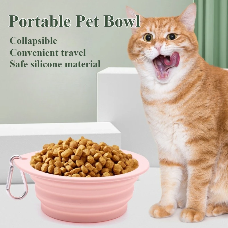 Cuenco plegable para mascotas, plato de agua portátil para comida de perros de viaje con mosquetón, cuenco plegable duradero de TPR para exteriores, alimentador de viaje para mascotas