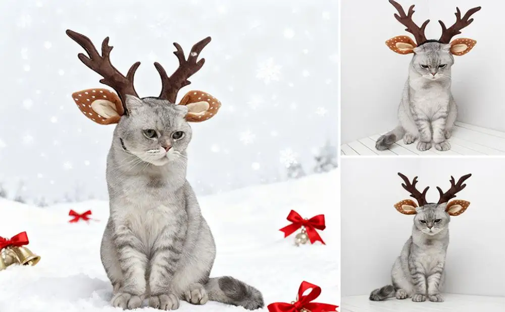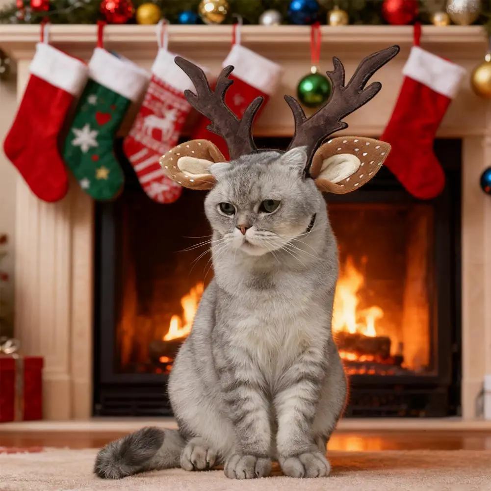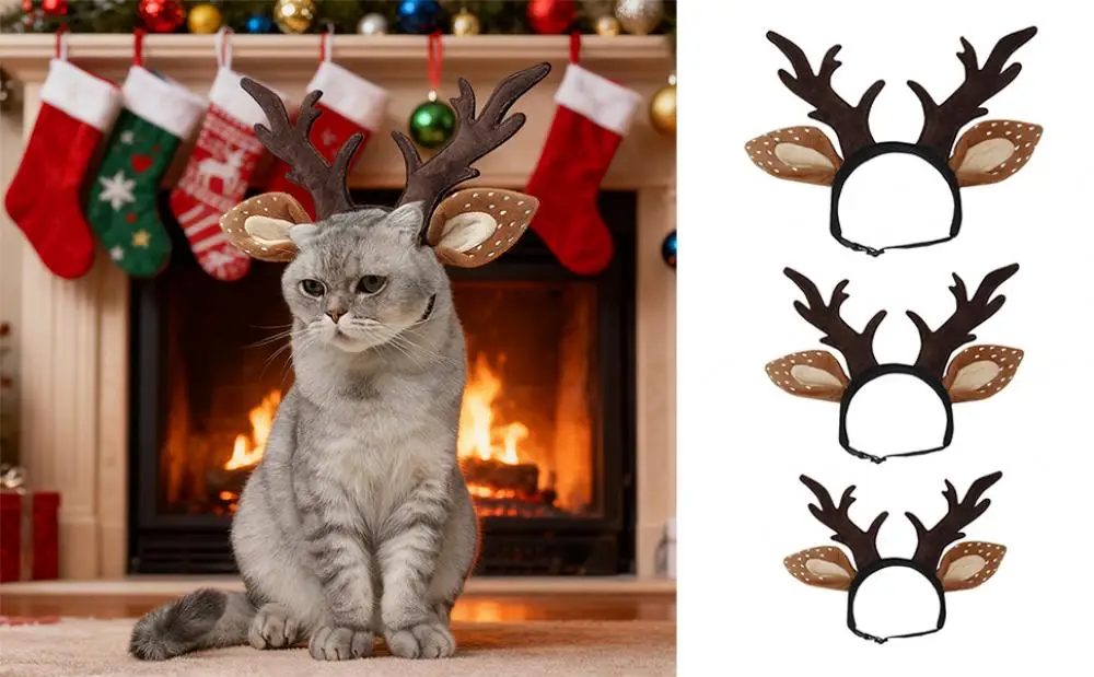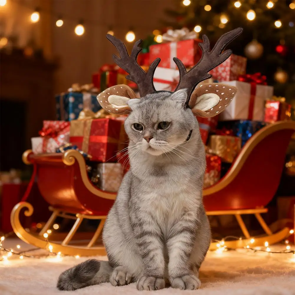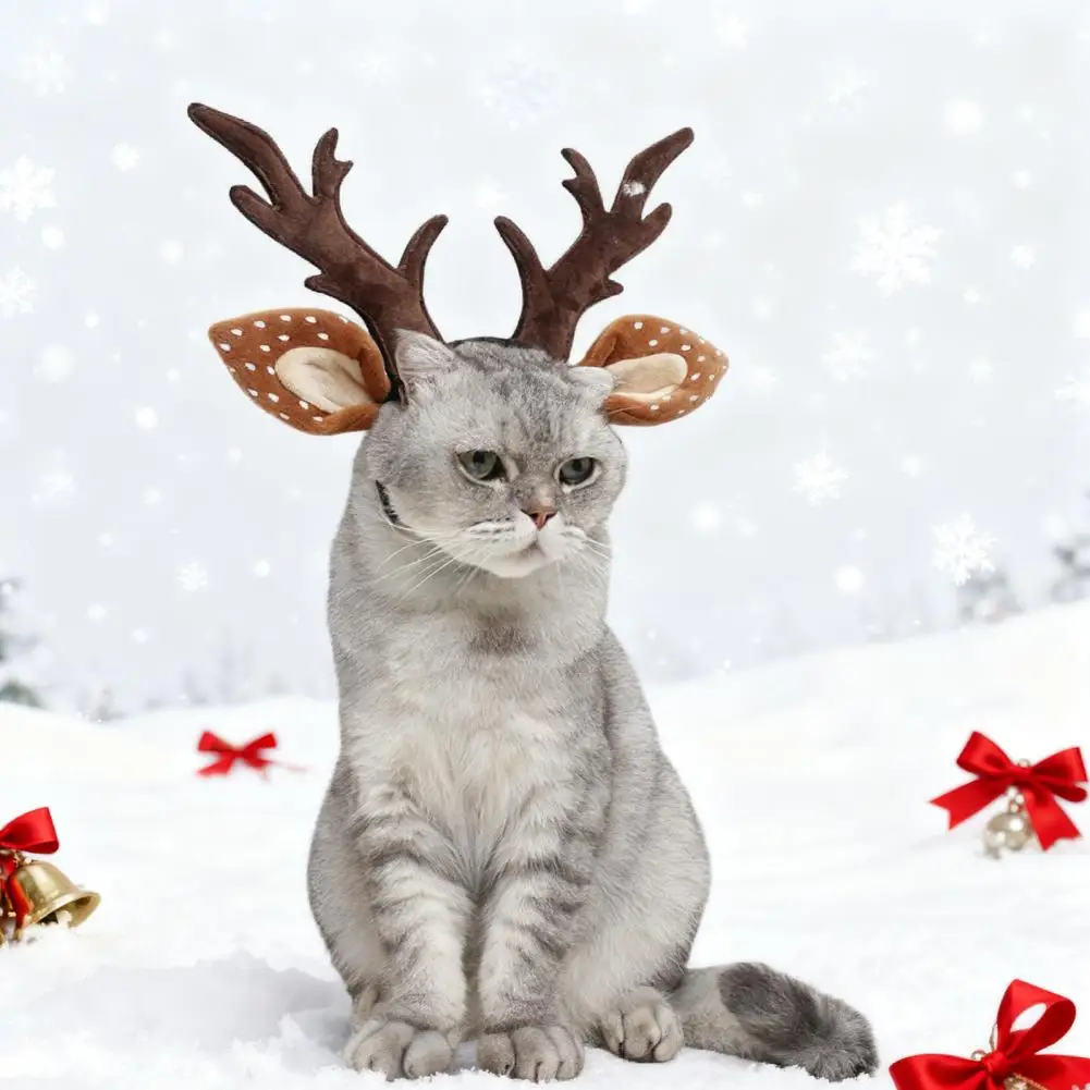 Delicia de regalo festivo: abrace el espíritu navideño con estas encantadoras diademas de asta para mascotas, perfectas para adornar a su mascota o regalar a otros dueños de mascotas, creando recuerdos preciados durante la temporada navideña.