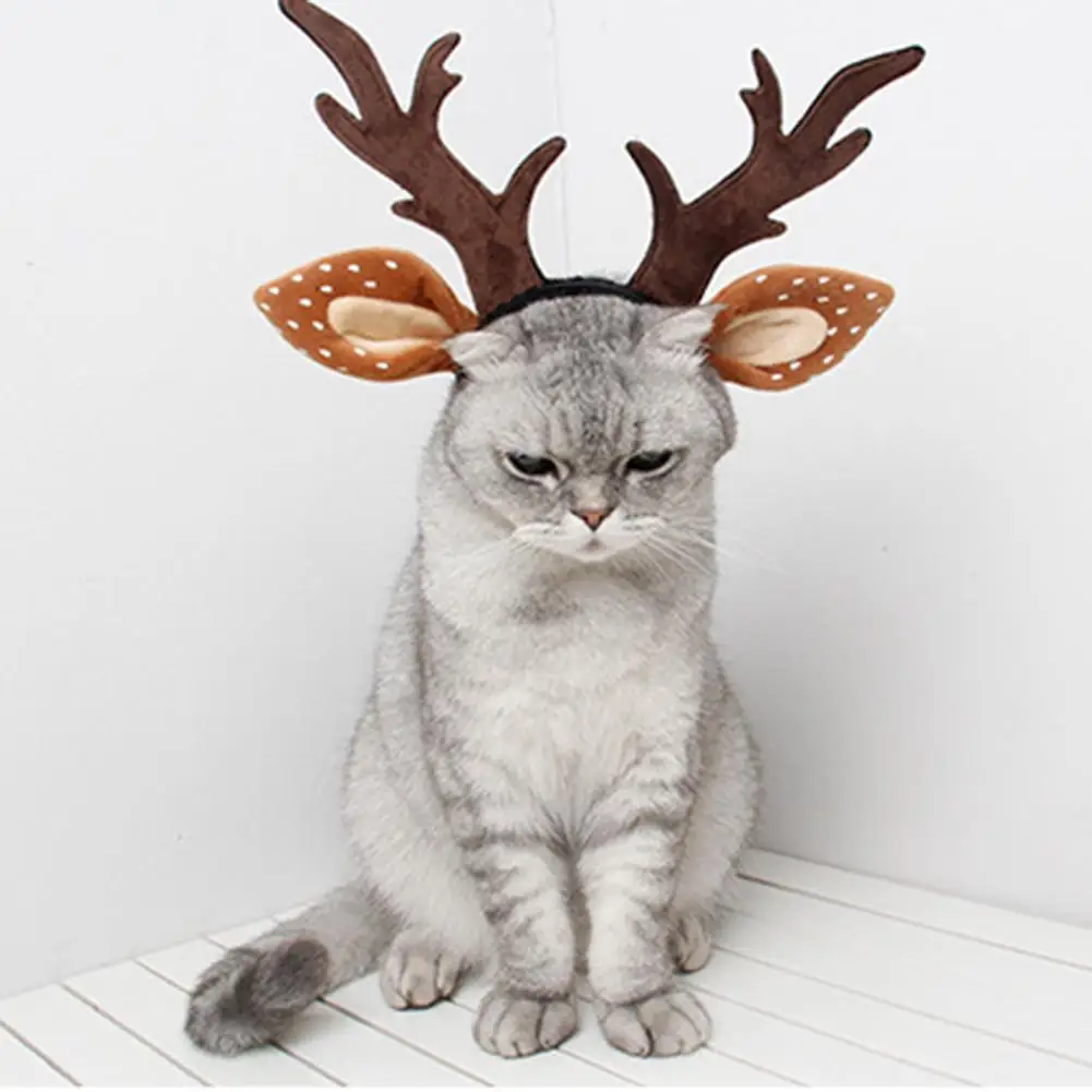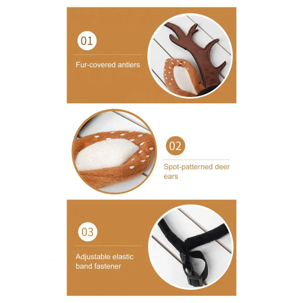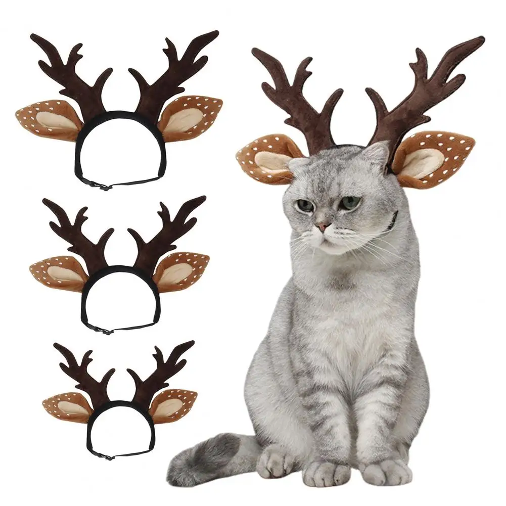 Diadema de astas navideñas para mascotas, diadema de ciervo ajustable con orejas manchadas, diadema de Cosplay de ciervo para perros, gatos, disfraz festivo, regalo de Navidad