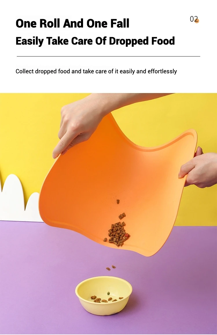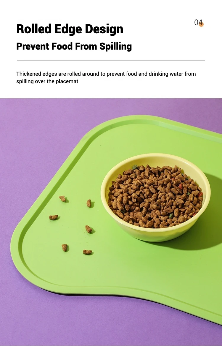 🌟 3. Limpieza sin esfuerzo:¡Dile adiós a los lavados frecuentes del suelo!Nuestra colchoneta de alimentación facilita la recogida de croquetas dispersas, lo que reduce la necesidad de una limpieza constante y mantiene un área de alimentación ordenada.