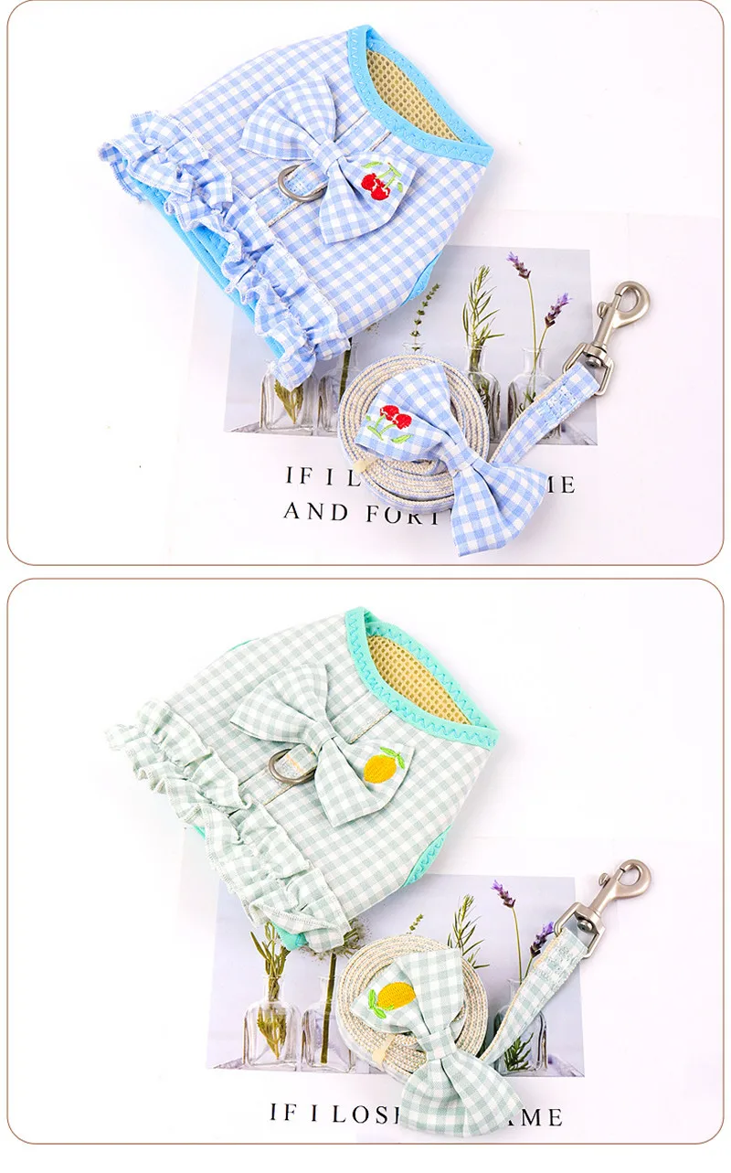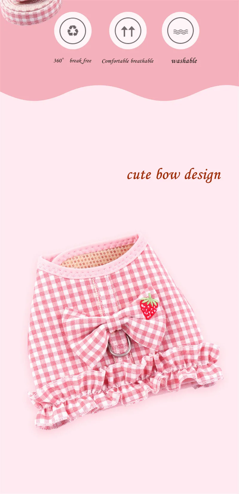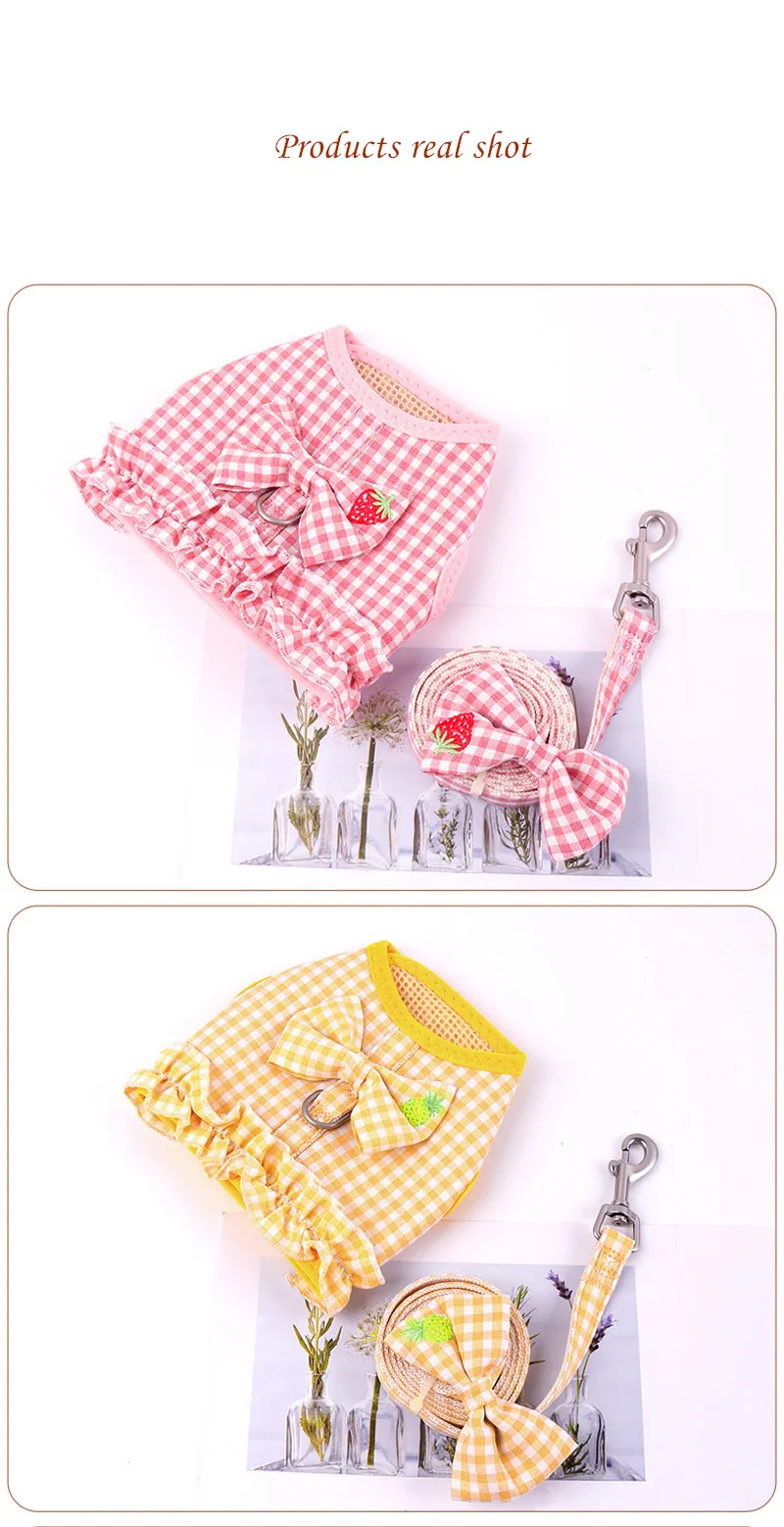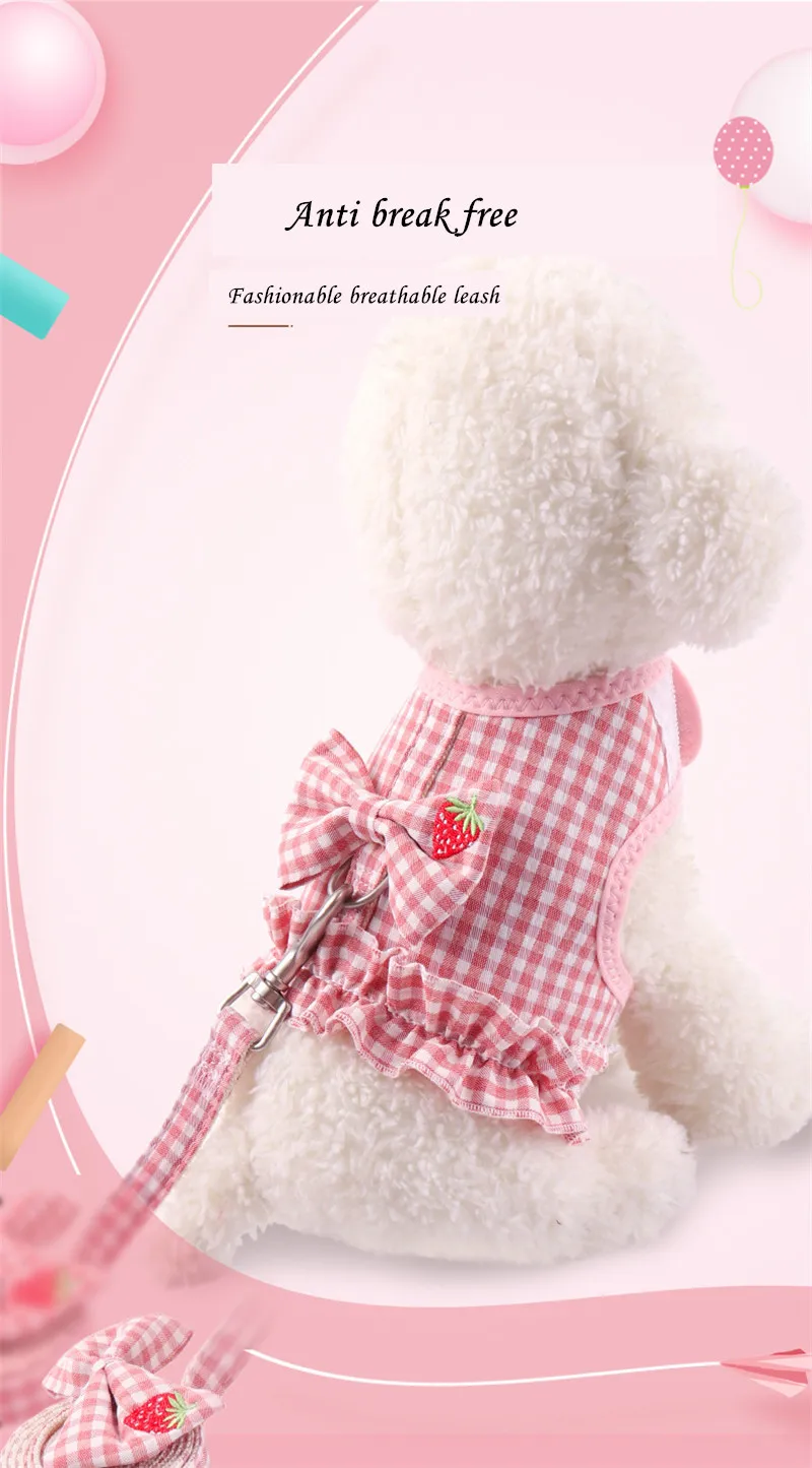 Falda con cuello de perro con lazo, bonito arnés para mascotas con correa para el pecho, cuerda de tracción, ropa para perros y gatos, chaleco con arnés, falda de vestido tutú de princesa