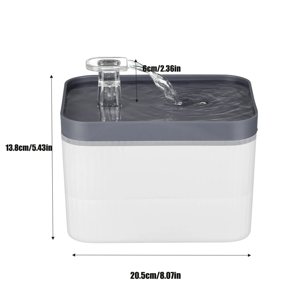Tiene una capacidad súper grande de * * 2,5 L * *, que puede soportar las necesidades de agua potable de una sola mascota durante aproximadamente 2 semanas y una familia de varias mascotas durante aproximadamente 1 semana con solo una adición de agua.Incluso si viaja o trabaja horas extras por un corto período de tiempo, no tiene que preocuparse de que su mascota se quede sin agua con frecuencia.El tanque de agua de gran capacidad se combina con un diseño visual de nivel de agua y el nivel de agua restante es claro de un vistazo, lo que lo hace libre de preocupaciones y tranquilizador.